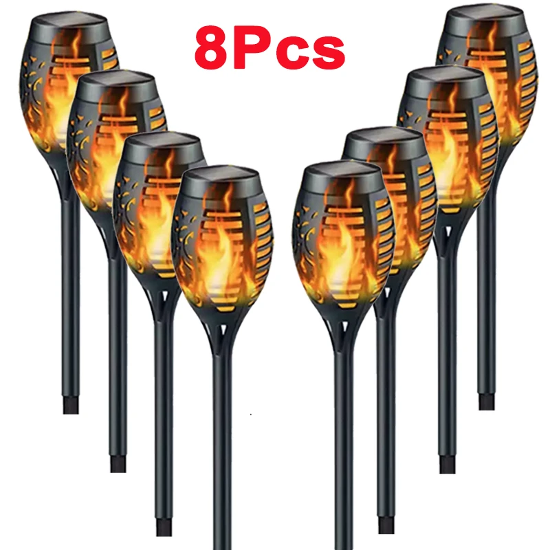 1/2/4/6/8/10Pcs Solar Flame Torch Lights Flickering Light Waterproof Garden Decoration Outdoor Lawn Path Yard Patio Floor Lamps