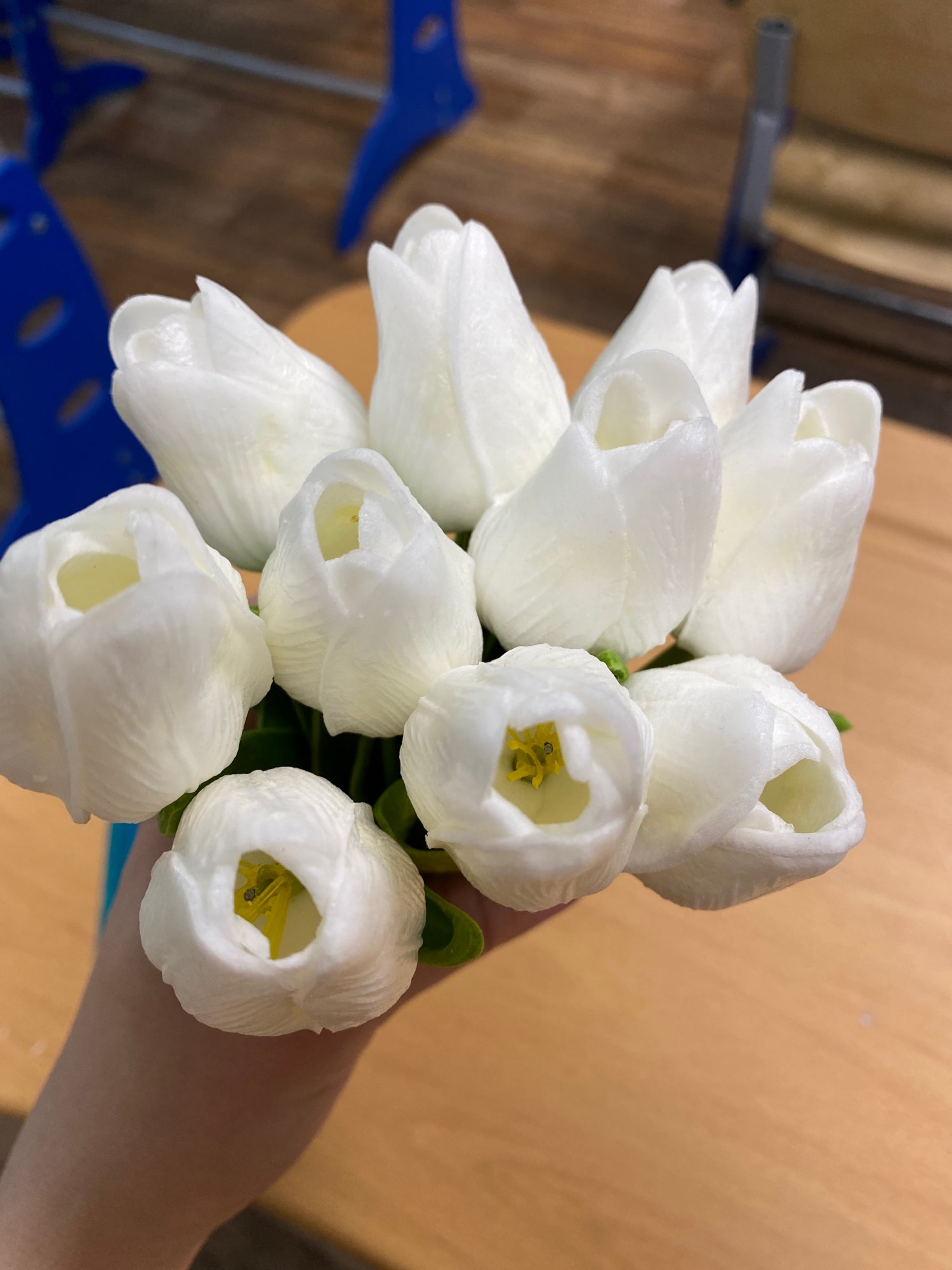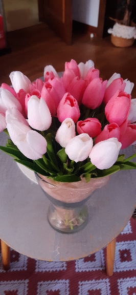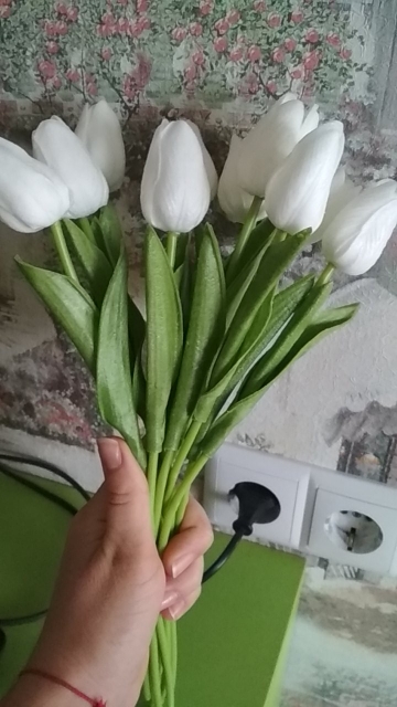 Excelente calidad parece tulipanes reales, no llegó doblado fuera de forma como la mayoría de las flores falsas. Pedimos algunos más para completar el ramo