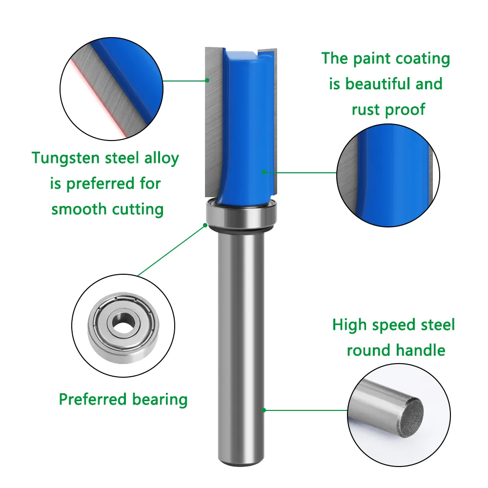 LA VIE 3 Uds. 1/4 »broca enrutador de corte al ras patrón Bit rodamiento superior e inferior borde fresa cortadora carpintero MC02210