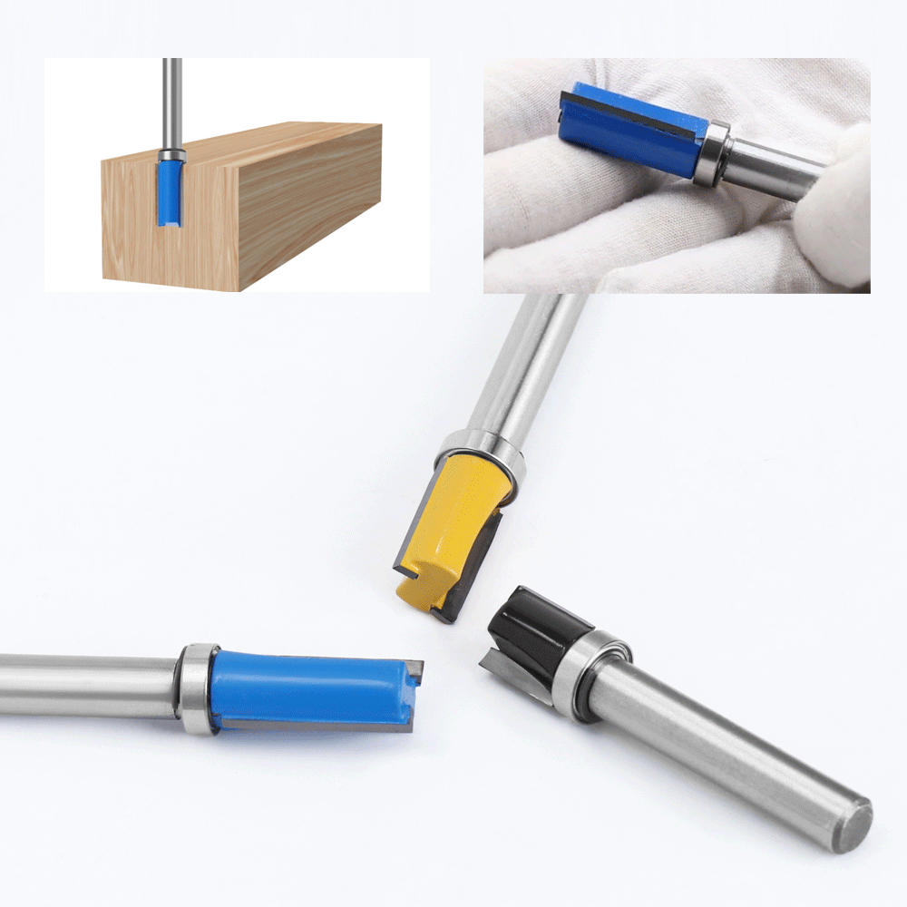 3pcs 8mm Shank Flush Trim Router Bit Pattern Bit Top Bottom Bearing 1/2