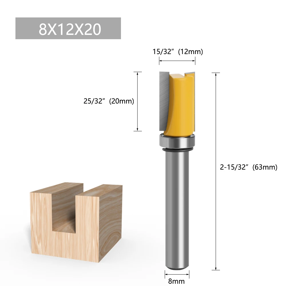 Broca enrutadora de corte al ras con mango de 8mm, 3 uds., patrón de broca, rodamiento inferior superior, plantilla de hoja de 1/2 «, Fresa de madera, carpintero MC02210