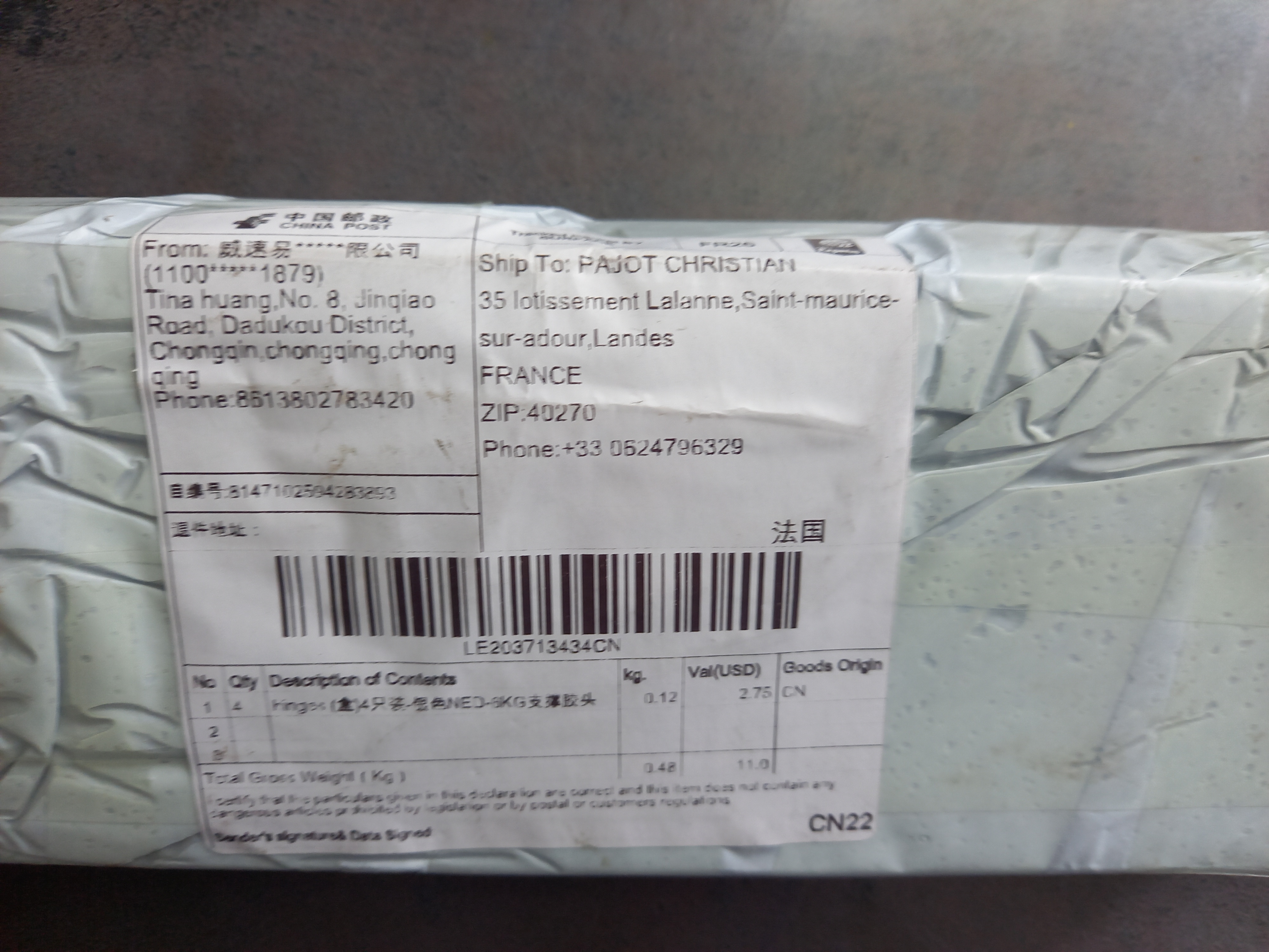 Hola vendedor descripción bien Paquete bien ¡Sin embargo, después de Francia me deja pagar una tarifa de € 9! ¿Por qué? ¡¿De los trámites de aduanas correctamente! ¿Por qué este impuesto tan alta que la tarifa de envío no están incluidos en? ¡Dame los dados posible una respuesta! ¡Saludos! Yo sello la imagen del paquete recibido Gracias