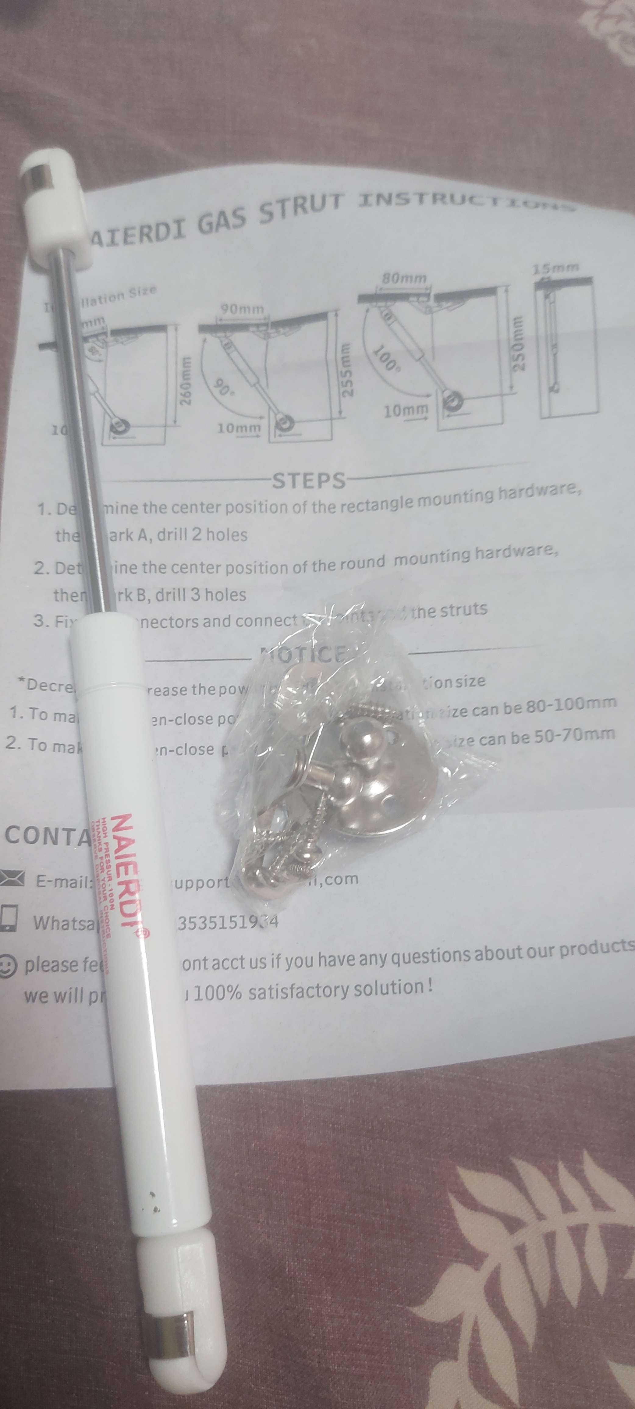 Good gas lifts, fasteners and installation instructions included, it reached Samara in 4 days.