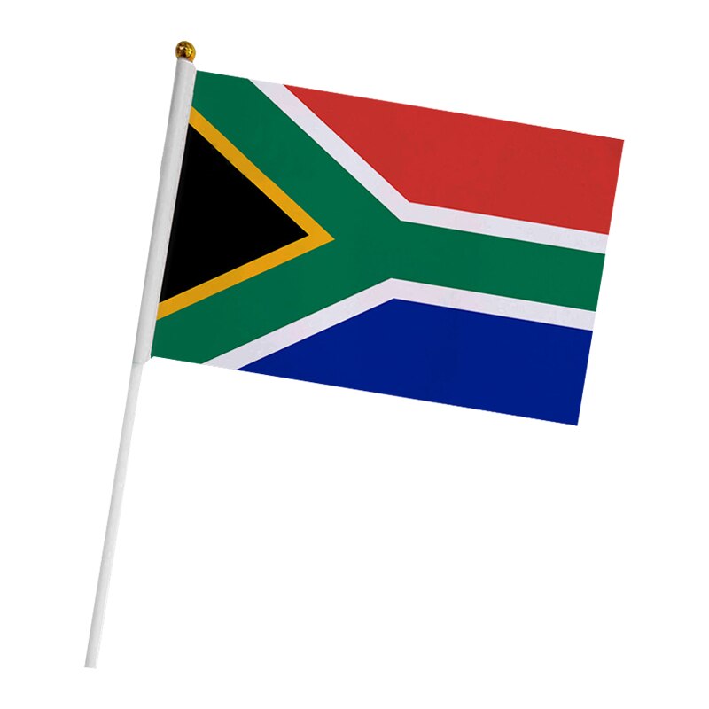 Aerlxemrbrae-Bandera de Sudáfrica personalizada, Bandera de mano de 14×21 cm, Impresión de doble cara, Bandera de Sudáfrica ondulada a mano, 100 unids/lote