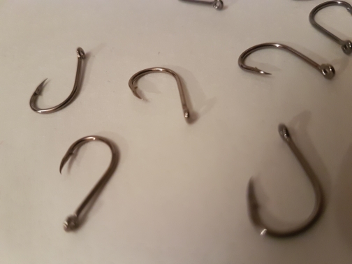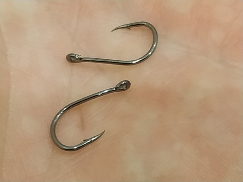 Hooks are very small with them only for squeezers or minnows to catch on small rivers, I took number 10 and they measure the dimensions by millimeters. the hooks themselves are good to see the swinging of the goods. To the store Thank you for a quality product.