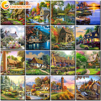 Town Diy-pintura al óleo por números, pintura acrílica de paisaje por números, imágenes artísticas de pared modernas, lienzo pintado a mano para decoración del hogar