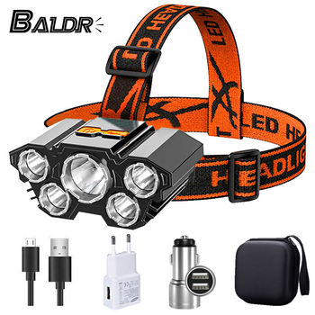 BALDR-linterna frontal recargable por USB, luz de trabajo portátil con batería integrada, 5LED, para pesca, Camping