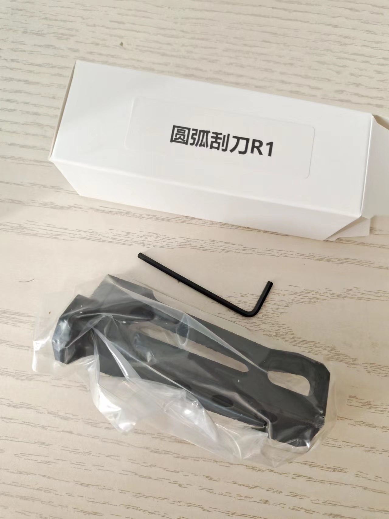 El paquete está completo. Aún no lo he comprobado, pero parece confiable, la cuchilla está afilada.