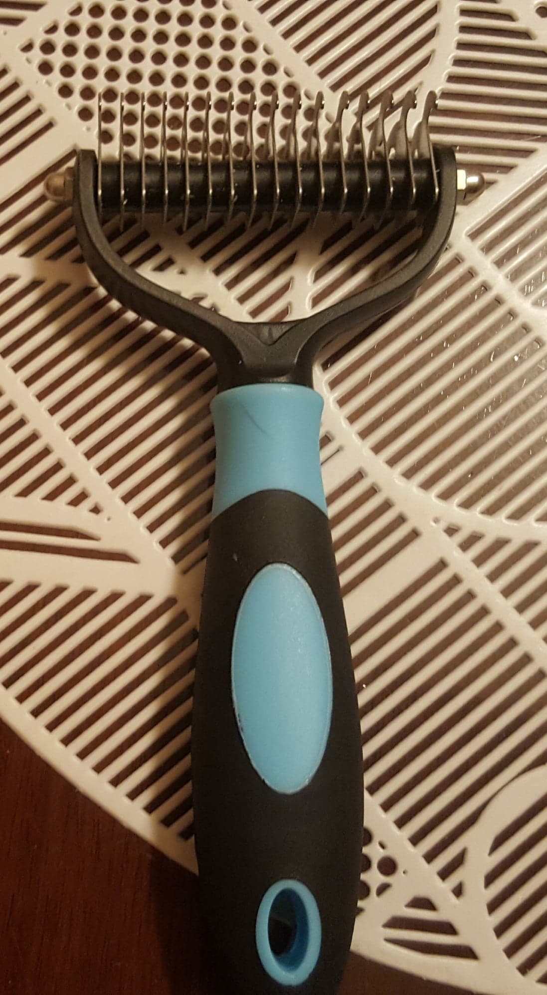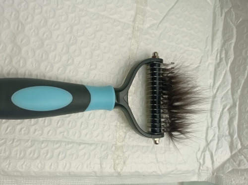 Este es, por lejos, el mejor cepillo que he usado en mi perro. Tengo un rottweiler y he probado numerosos cepillos que pueden manejar su doble capa, pero ninguno de ellos hace el trabajo como este. Si tu perro tiene una capa doble, no dudes en pedir este cepillo. Solo ten cuidado cuando lo cepillas-tienes que hacerlo lentamente, de lo contrario Ripa el abrigo, en lugar de cepillar el exceso.