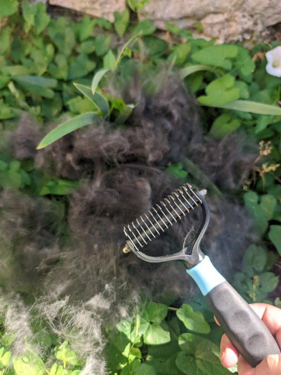 ¡Este peine deshilachado es absolutamente genial! Realmente bueno, es lo mejor de siempre si queremos decir peine para desodorizar a un perro. ¡Vale la pena comprar! ¡El pelo de mi perro después de tal vez 5 minutos de cepillado :) cargas!