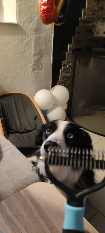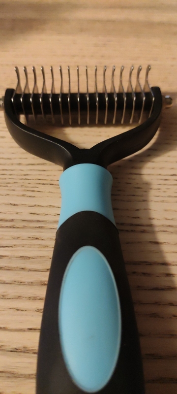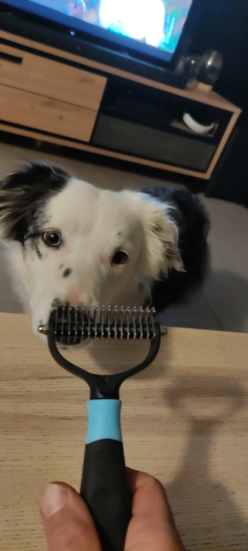 ¡Buena calidad mango ergonómico! ¿Un uso por pequeñas bastante rápido disparos de lo contrario tira el pelo largo con nudos recalcitrantes mi frontera collie? Me l'utilise en suplemento un cepillo clásico ¡Buen Producto!