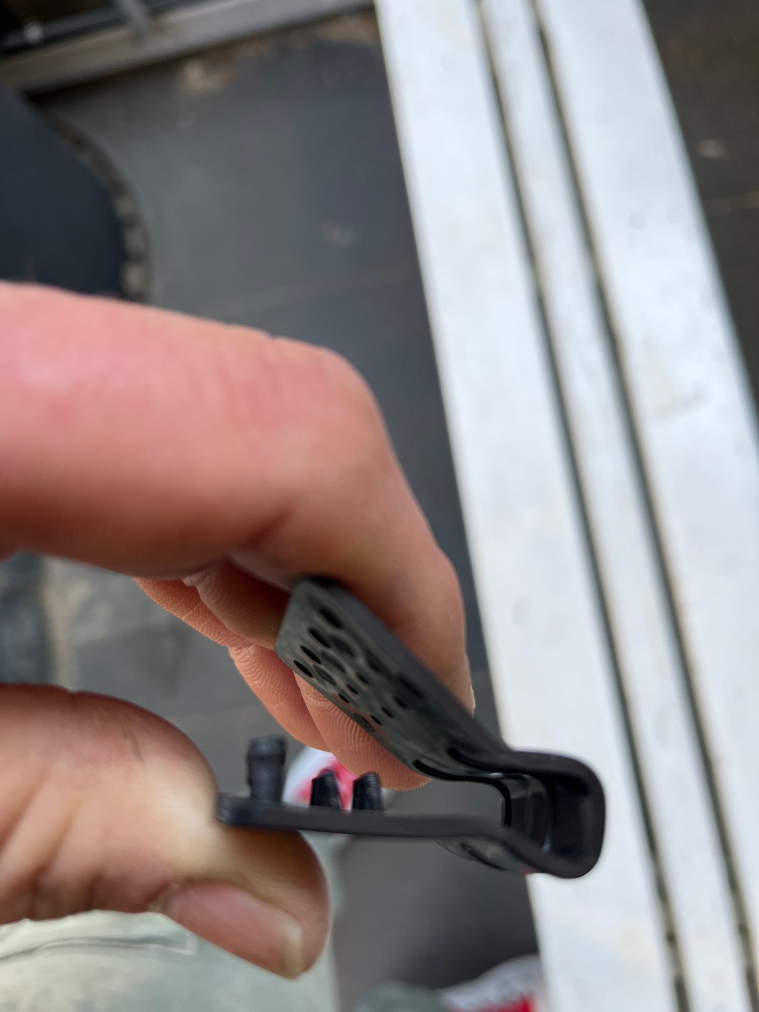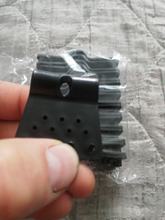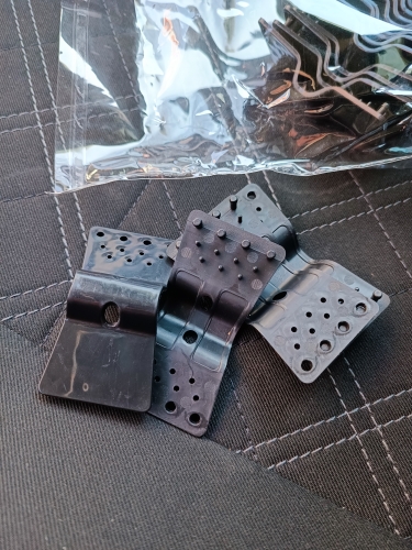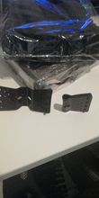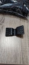 Gestos de plástico, no se abrirá por sí mismo, dos agujeros de diferente dirección para cordones como tendedero o paracord. Diseño bastante cómodo.