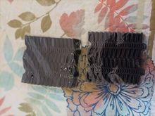 Pensé que cerrarían más fácil. Los picos que van a través de la tela tienen un Romo que hace que sea difícil de empujar a través. Luego, cuando se trataba de cerrar, los pequeños seguían saliendo de la tela. No logré cerrar el clip con todos los pines. El clip no permanecería cerrado, así que derritió las puntas de los grandes alfileres. No es el mejor producto, pero funciona (más o menos)…