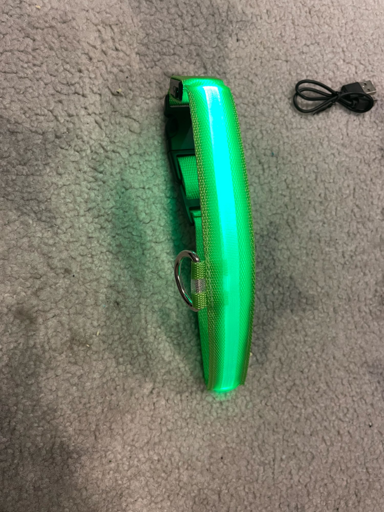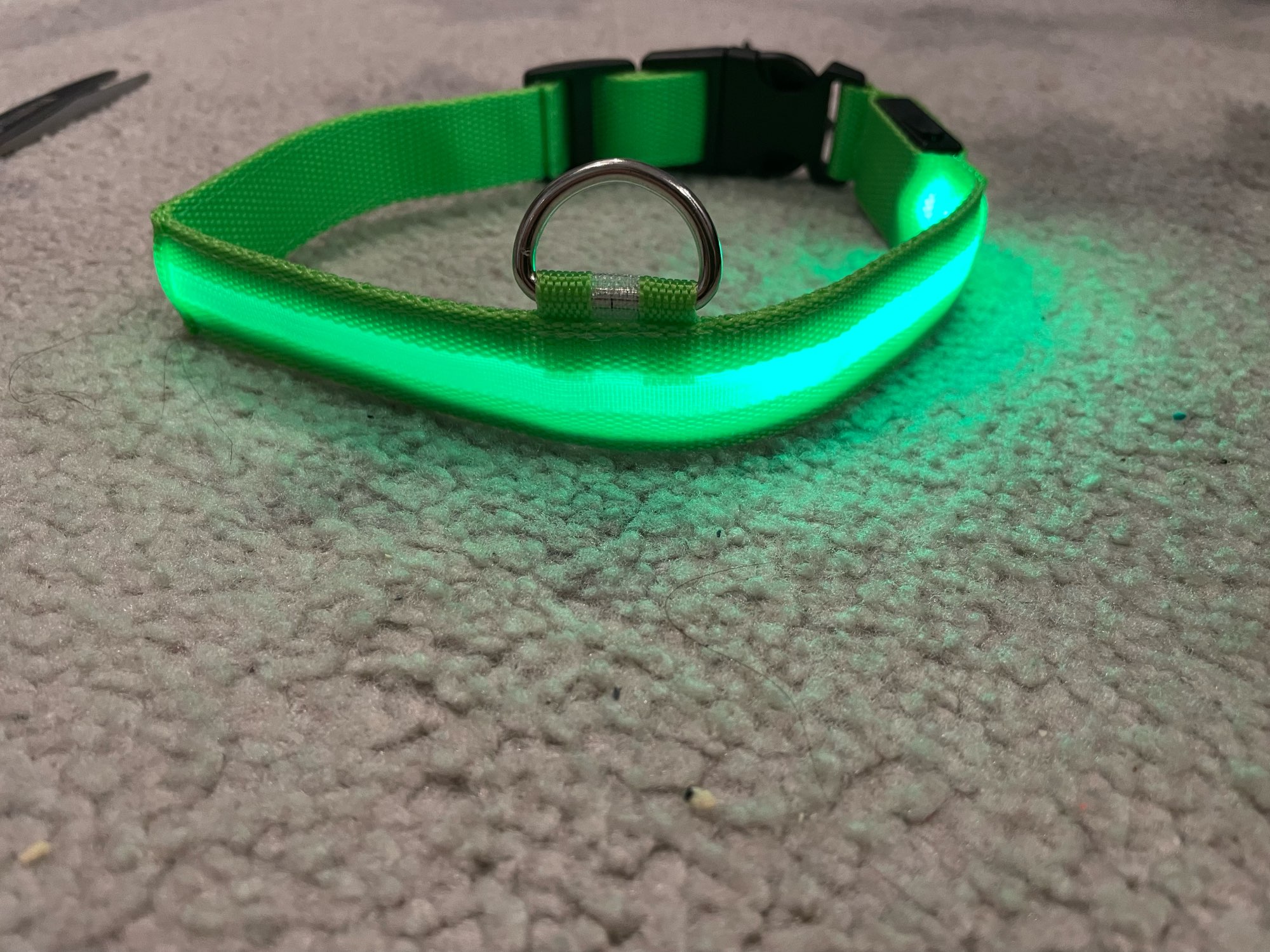 Un buen collar, incluido un cargador, está completamente cargado en aproximadamente una hora. Hay 3 modos de iluminación, mucho más brillante de lo que pensaba! Compra recomendada