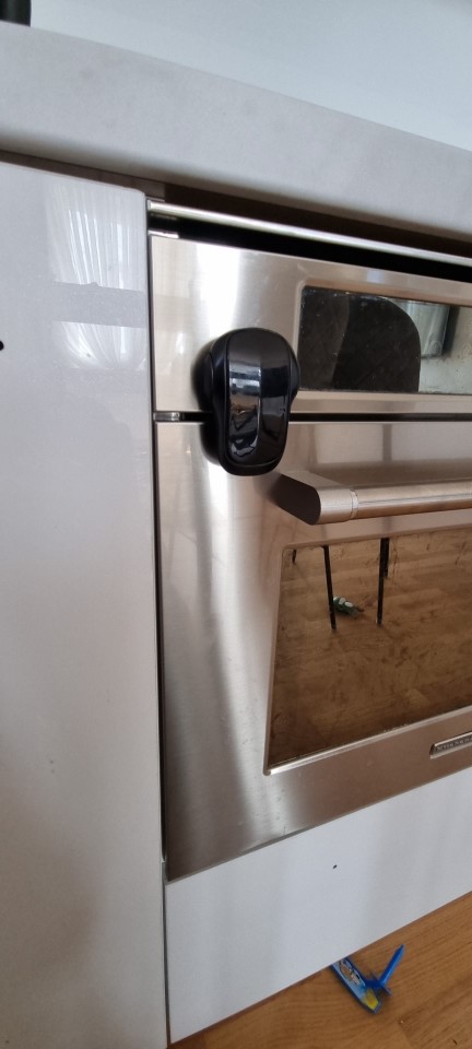 Elegante bloqueador, muy apretado, el niño no puede abrir el horno. ¡Le aconsejo!