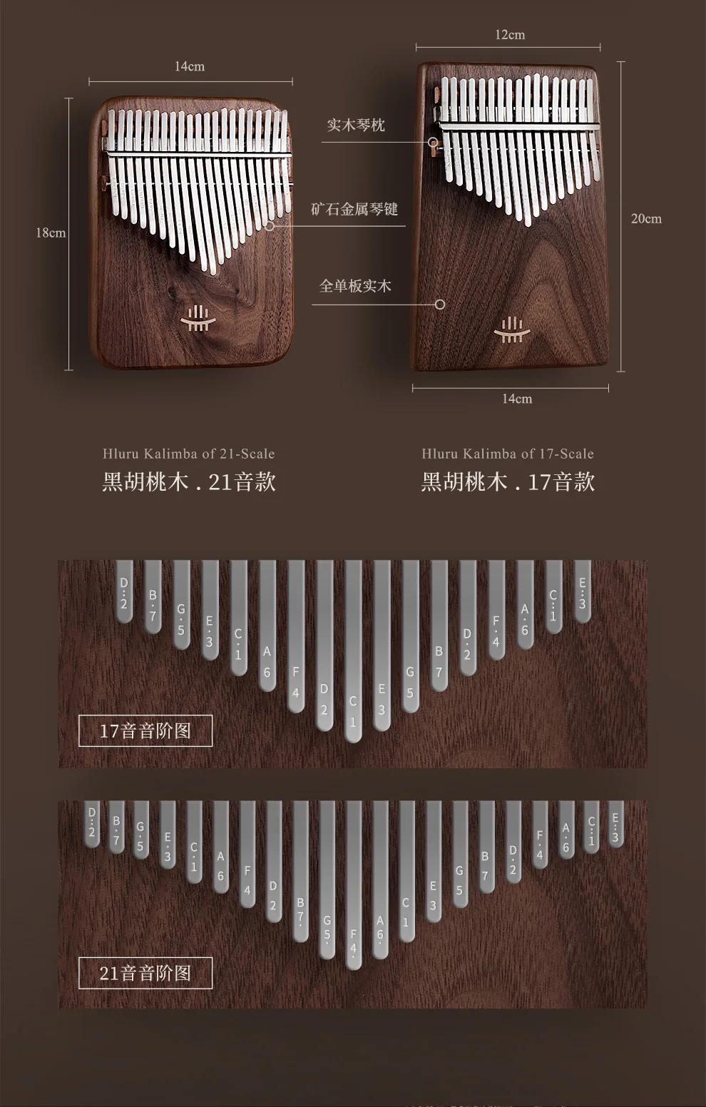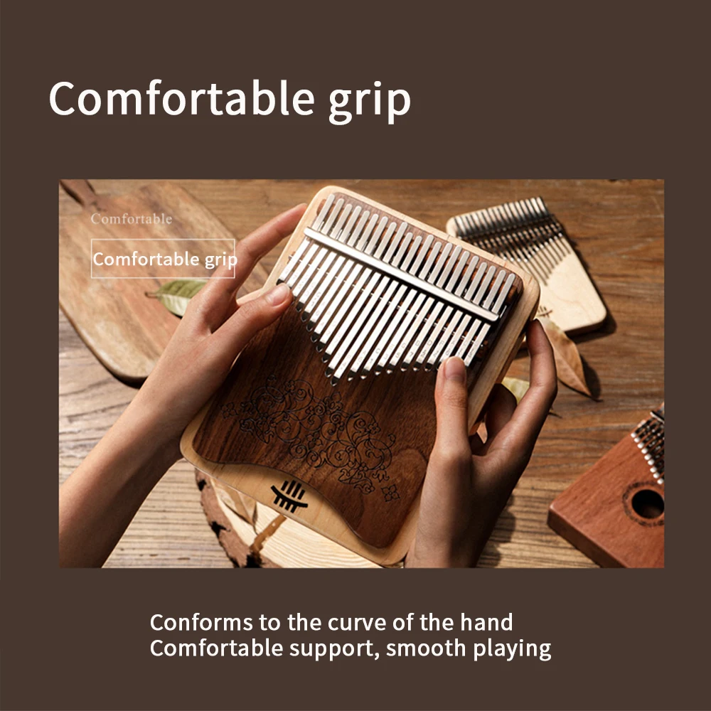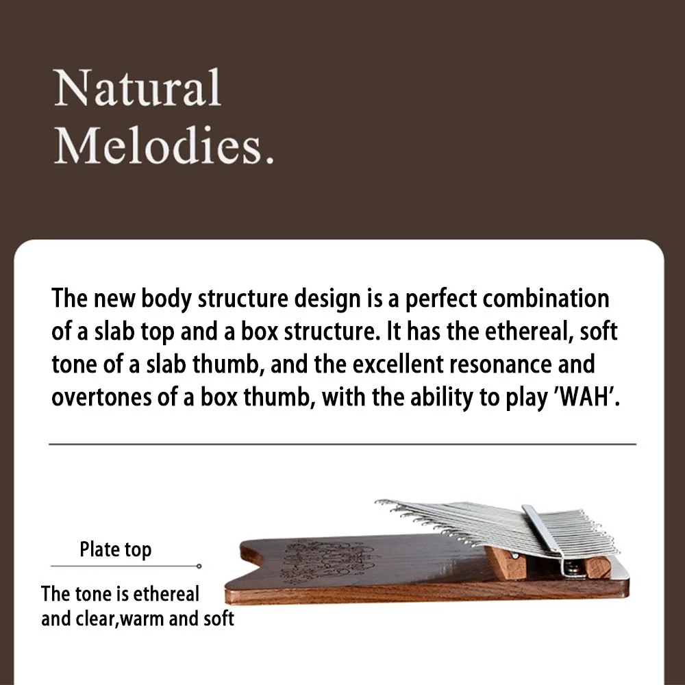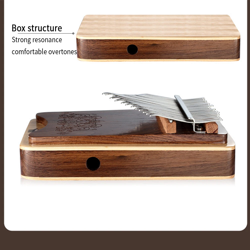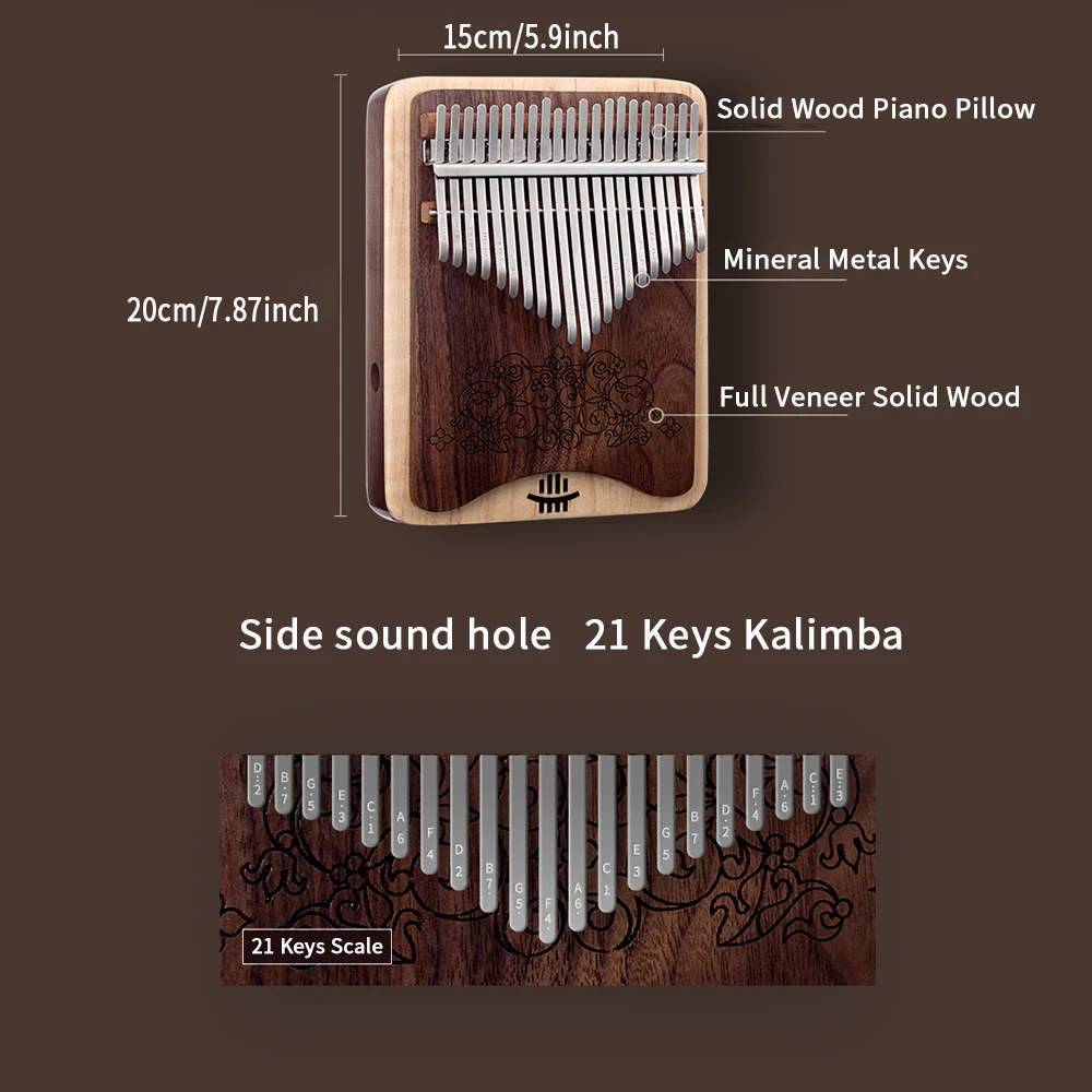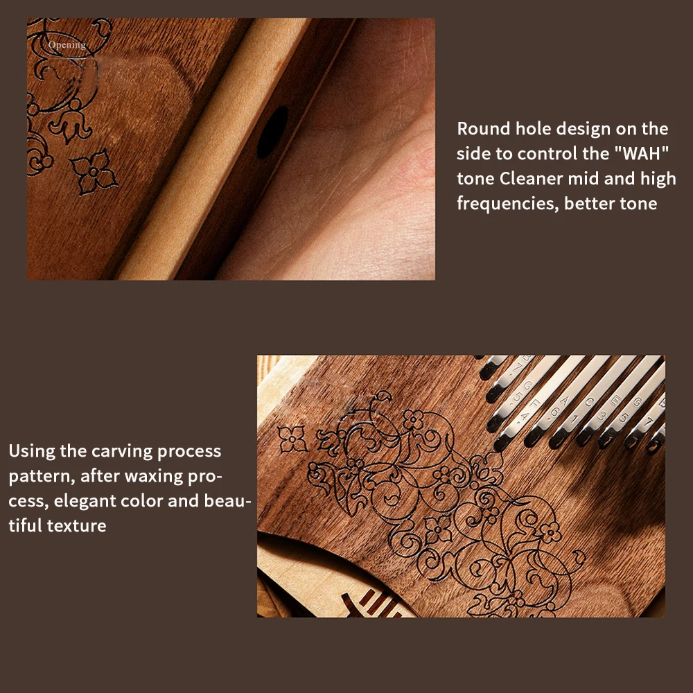 1. 【Material y artesanía de nogal y maple】Este es un instrumento bellamente elaborado hecho de nogal y madera de arce. La madera es muy lisa y brillante y se siente muy bien. Utilizando paneles ecológicos sin pintura, la superficie está encerada con un color elegante y una textura Hermosa. Es el mejor material para pianos de pulgar. El material mineral de las llaves no es fácil de oxidar. Usando el patrón del proceso de tallado, después del proceso de encerado, color elegante y hermosa textura.