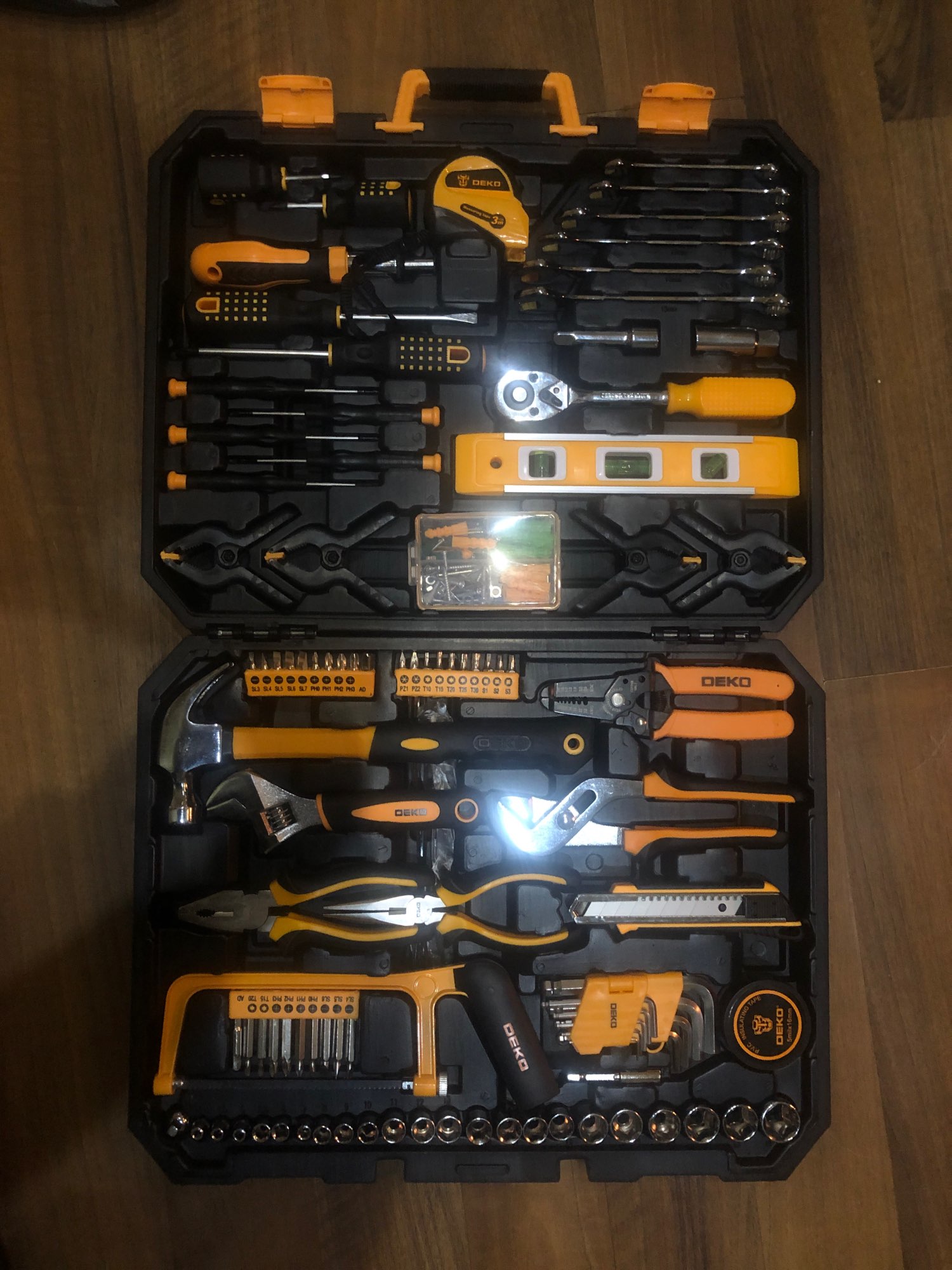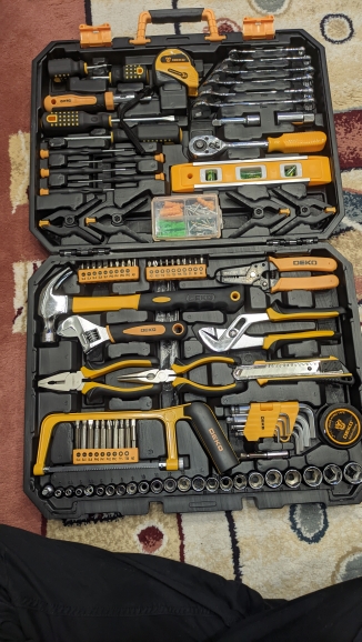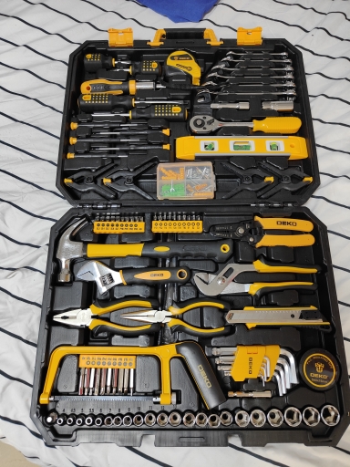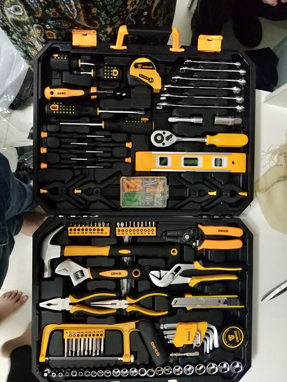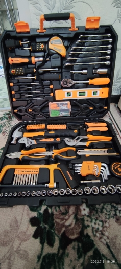GRAN KIT PARA EL HOGAR! La calidad no es macita, por supuesto, y es estúpido incluso pensar en ello, pero! Golpear el estante, atornillar las tuercas, sí, cualquier tarea doméstica para resolver-suficiente con la cabeza. Lo más genial es que todo está en un solo lugar, nada cae en ninguna parte y no necesitas diez estantes para todos tus martillos, alicates y un armario de llaves y llaves. En resumen, el mejor Gasto de cinco mil rublos para la casa! Le aconsejo a todos un conjunto de 168 artículos. Llegó en 3 días de entrega por mensajería hasta el umbral, por lo que un gusto separado!