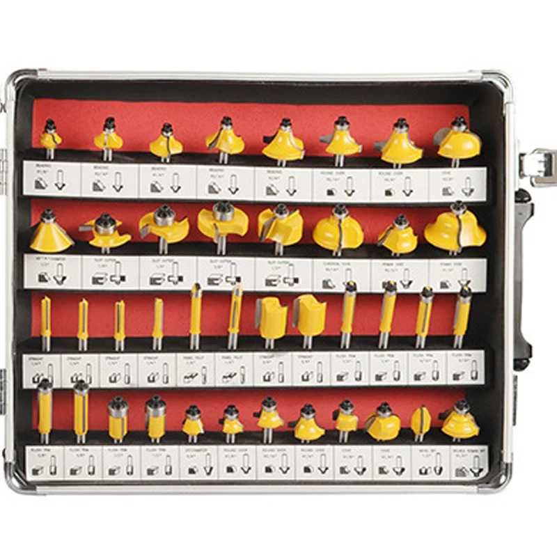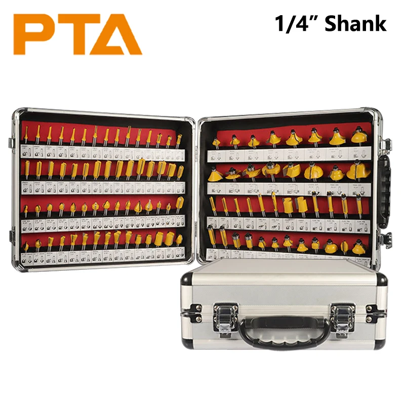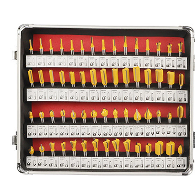Juego de brocas de enrutador de vástago de 100 piezas y 6,35 MM, fresadora de carpintería empaquetada en caja de aluminio, fresa de carburo