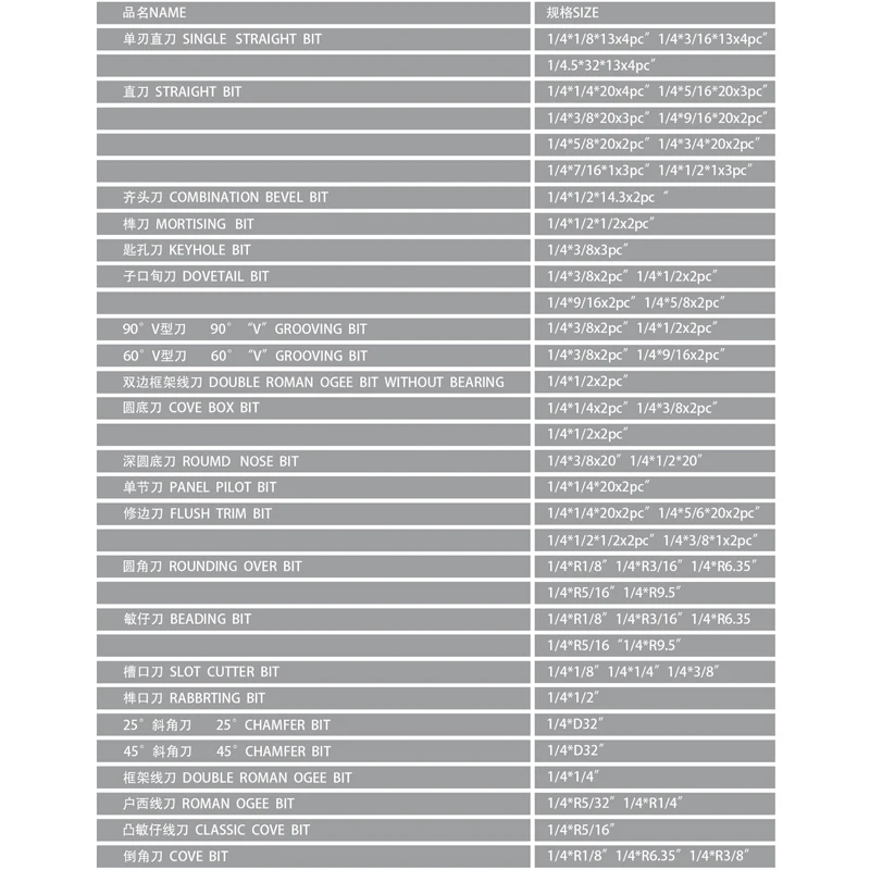 Ltem: Juego de brocas para enrutador de vástago de 6,35mm