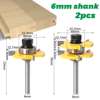 Juego de Herramientas de enrutador de lengüeta y ranura, vástago de 1/4 »con inglete de bloqueo de 45 °, vástago de 1/4» y 6mm, diseño antiretroceso
