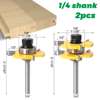 Juego de Herramientas de enrutador de lengua y ranura, vástago de 1/4 «con bloqueo de 45 °, broca de inglete de 1/4», vástago de 6mm, acero sólido, diseño Anti Kickback