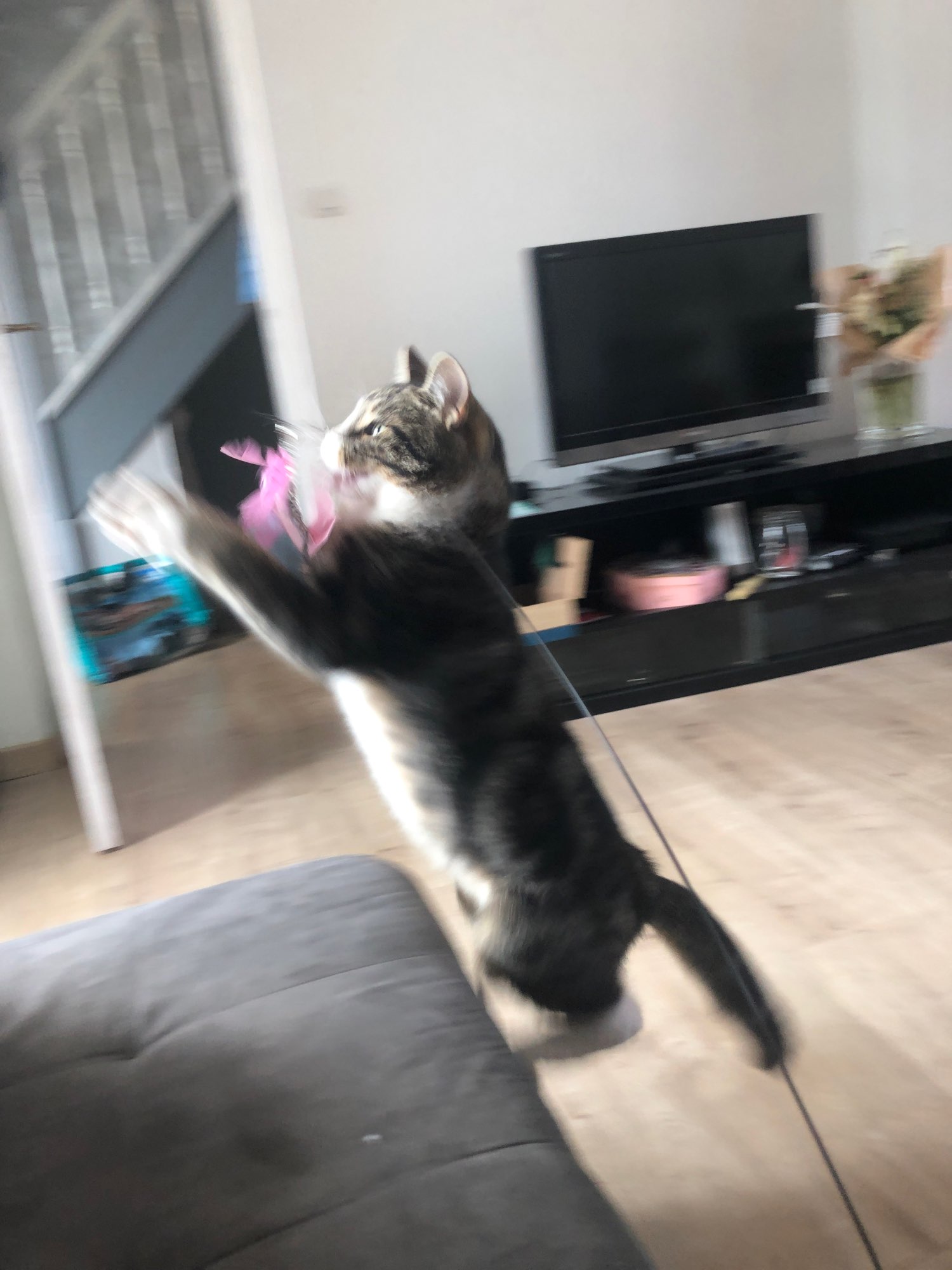 ¡Es el estallido de mi gato! ¡Le encanta el juguete! Desafortunadamente el pie de fijación con chupasangre no funciona no se pega (he buscado durante mucho tiempo una ópera pero no la encontré) por lo que tengo que encontrar otra solución :)