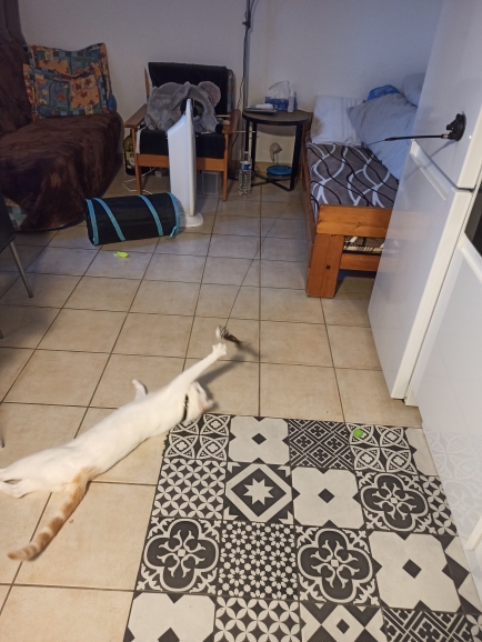 Juguete adoptado por mis gatos, pero dificultad para entender cómo se enredó y la aspiradora no pega lo fijé con pegamento .. Daños