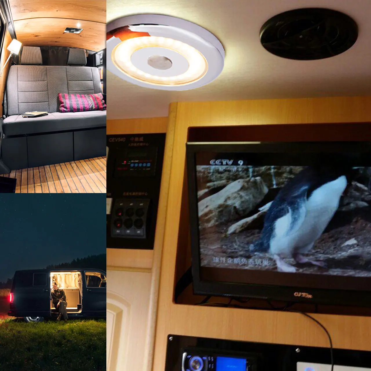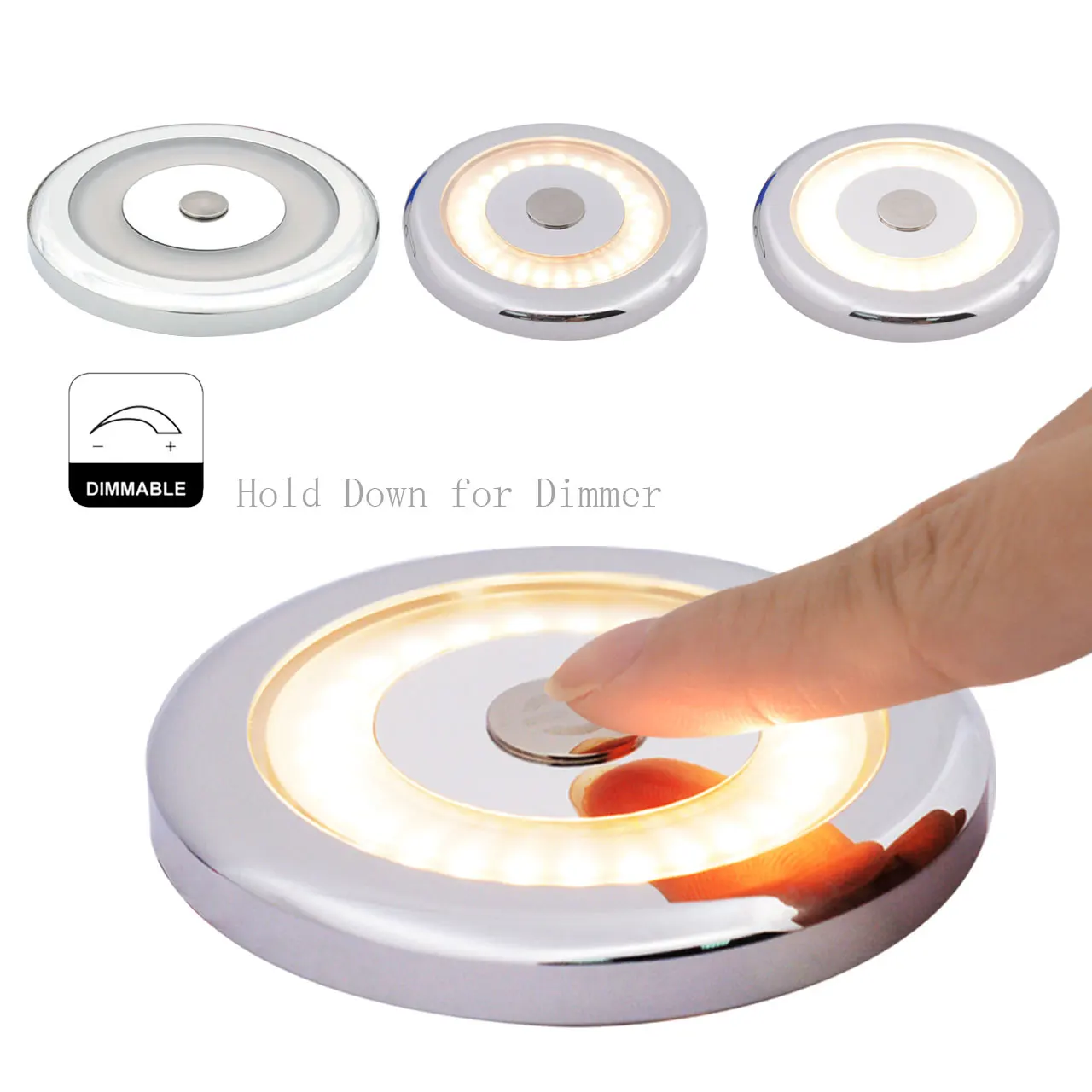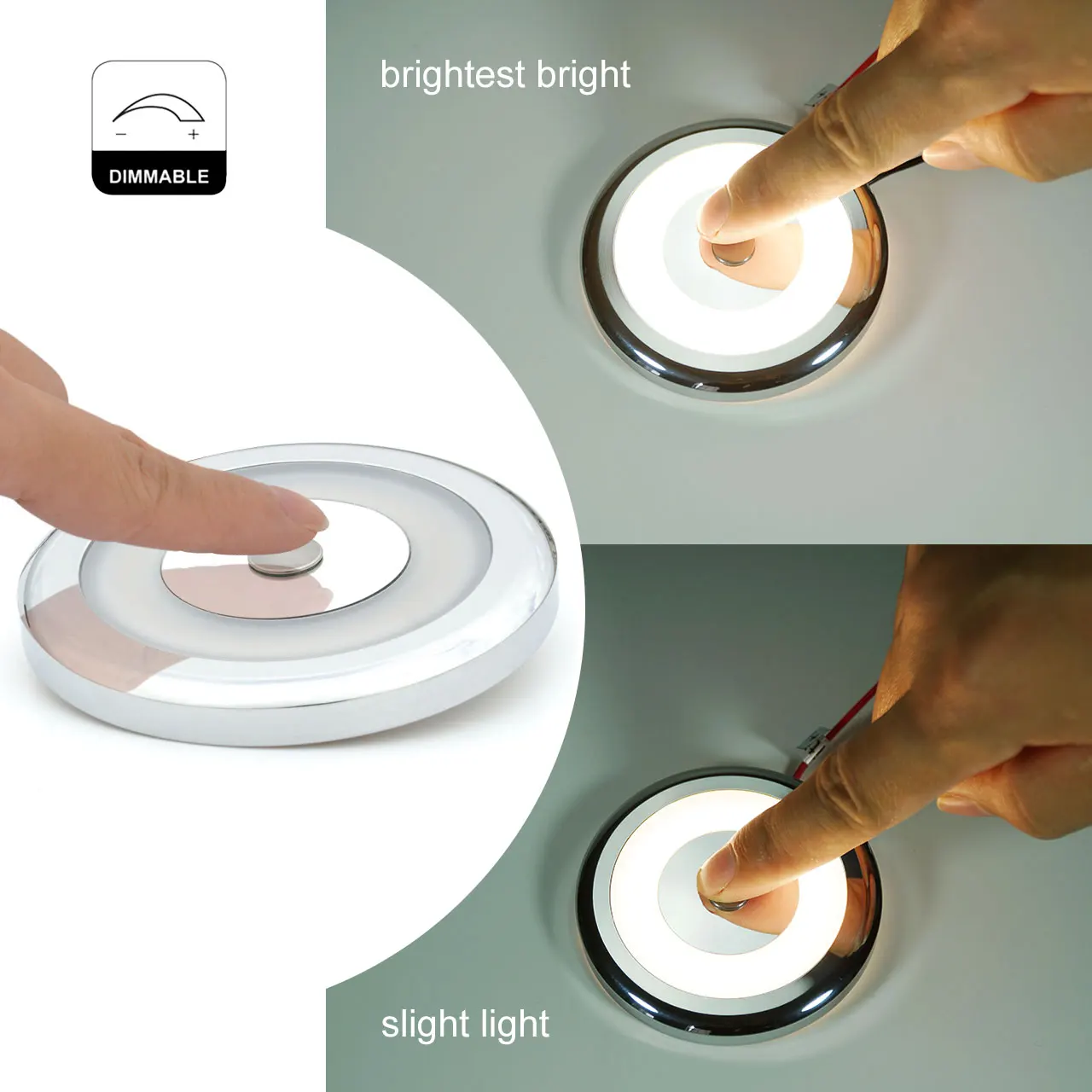 Luz LED redonda para techo de caravana, lámpara Interior de 12v y 3w con interruptor de atenuación para Camper, caravana, barco marino, accesorios