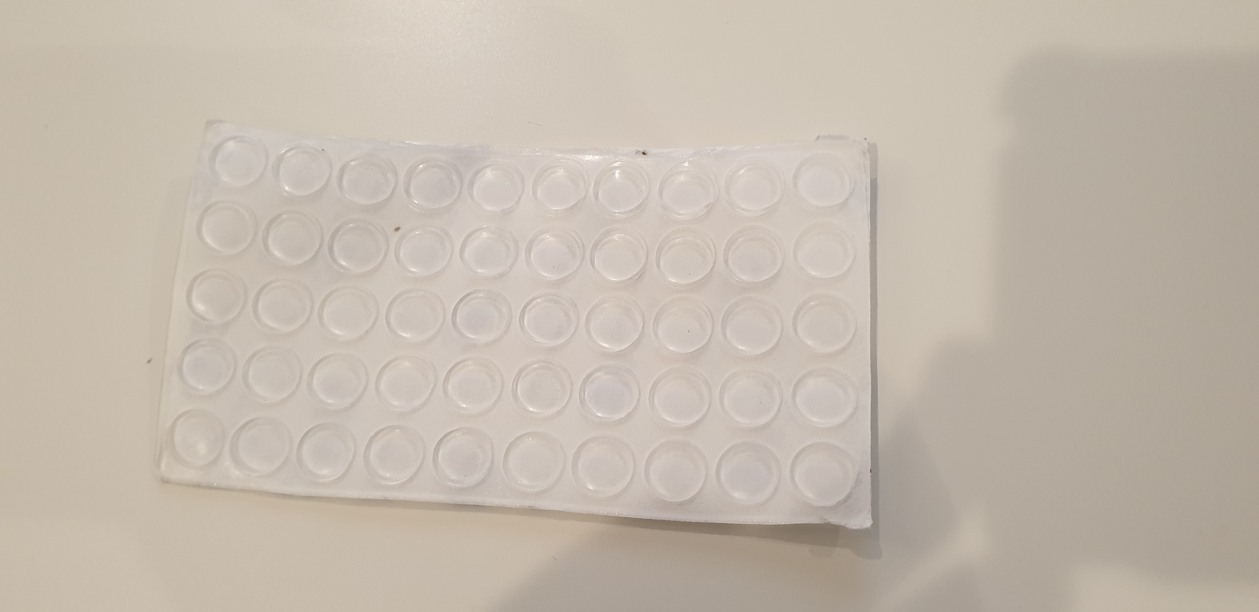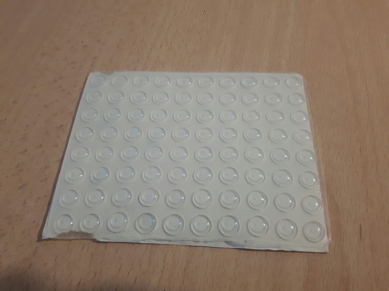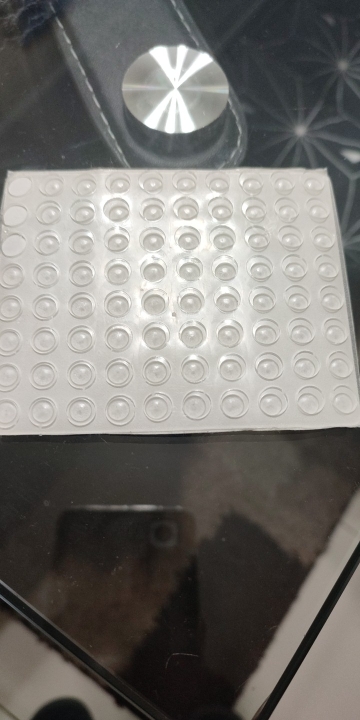 Llegó algo tarde pero fue por culpa del correo local, no del vendedor. En cuanto al producto, es bueno, la goma tiene suficiente rigides para reducir notoriamente el impacto contra ella. El adhesivo es bueno, lo despegue 2 veces porque lo habia pegado en un lugar que no me gustó, e incluso con varios días no ha habido problema, sigue sin despegarse.