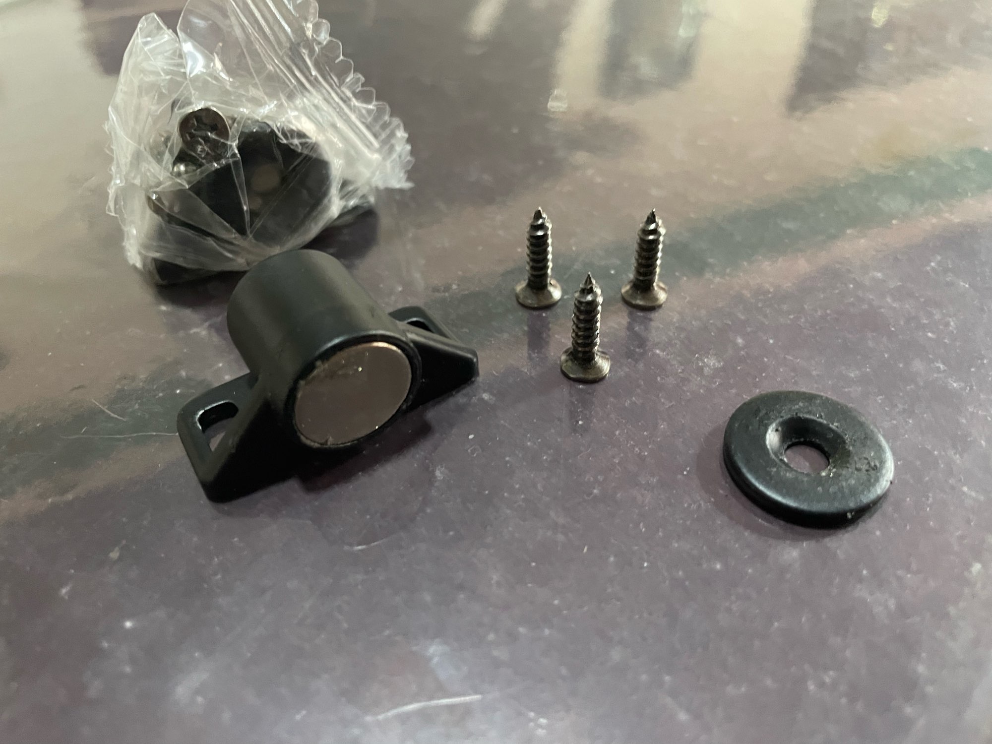 El paquete duró 30 días. La pista estaba siendo rastreada. El imán está hecho cuidadosamente de suficiente potencia para mantener la puerta del Gabinete de la cocina. El kit tiene tornillos. No surgieron problemas de instalación.