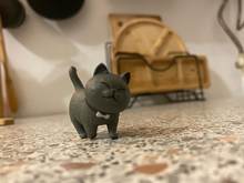 El gato es divertido. Pero el gato se quitó la pluma
