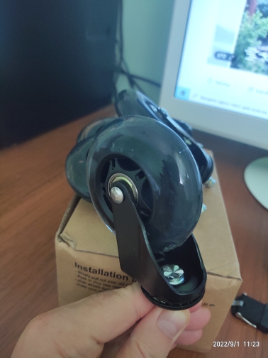 Las ruedas se acercaron a IKEA Marcus. No está apretado, un poco de lufteta. La sensación de que este Luft impide el movimiento cuando comienzas a girar en la otra dirección. Las ruedas se inclinan primero, luego se giran y se vuelven fácilmente. En general, la silla comenzó a viajar mucho más tranquilo. Ahora, si lo empujas, no se detendrá hasta que se encuentre con algo.
