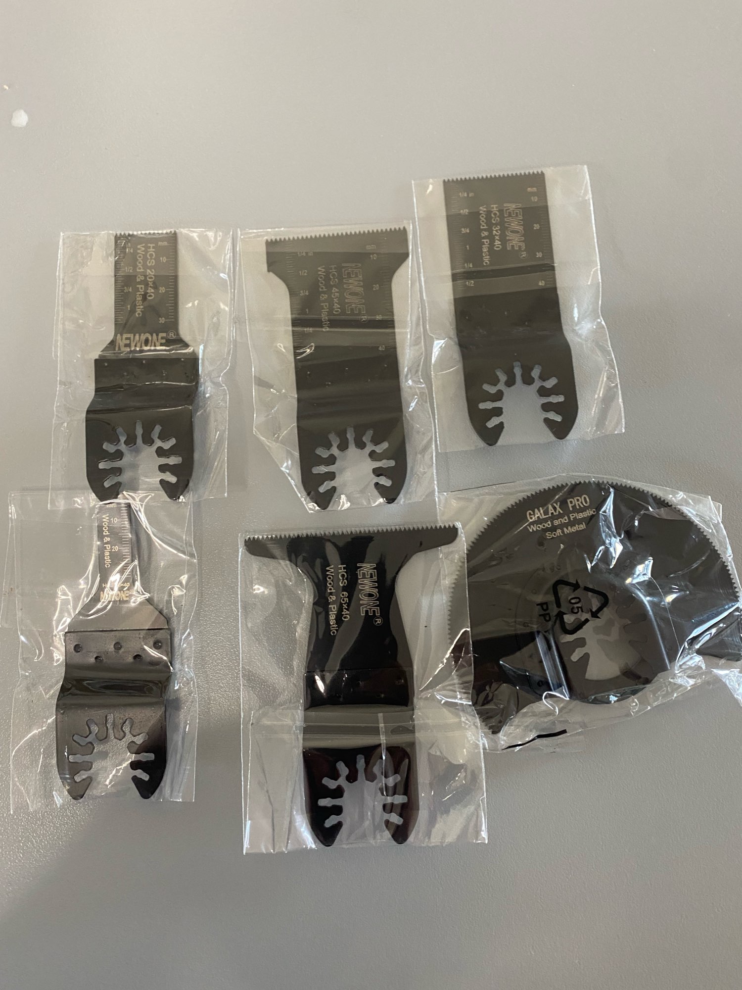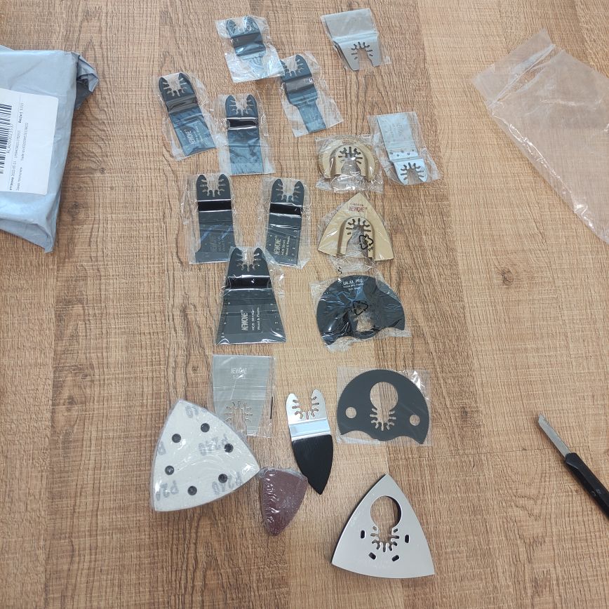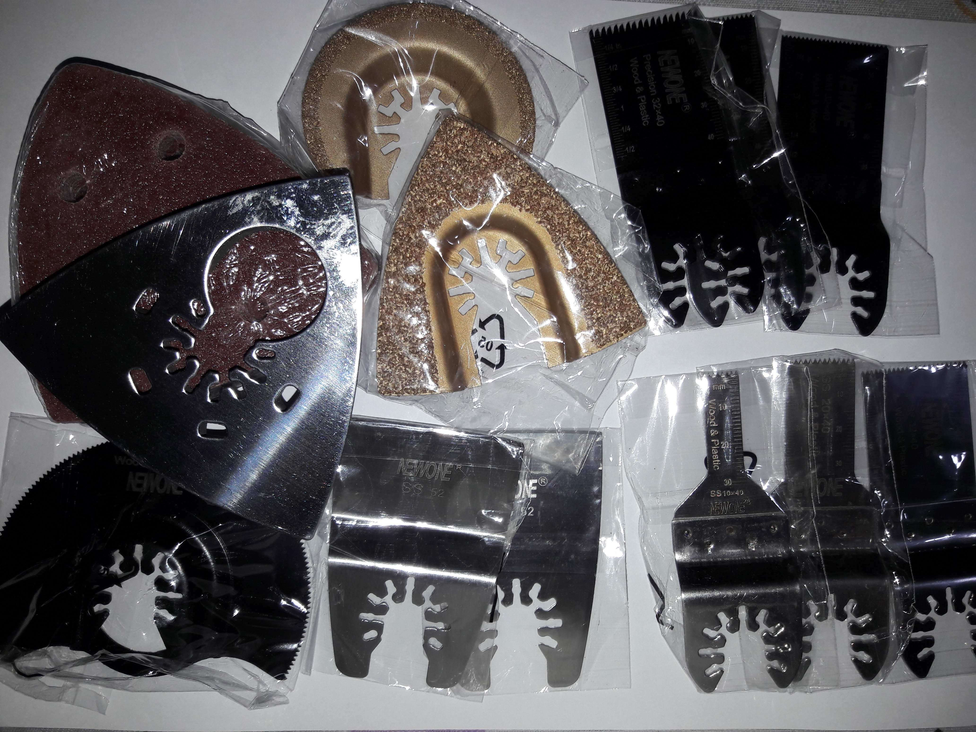 66pcs. include HCS,BIM,CARBIDE, JAPAN-TOOTH blades, scraper and sanding pad, they are all usefull.