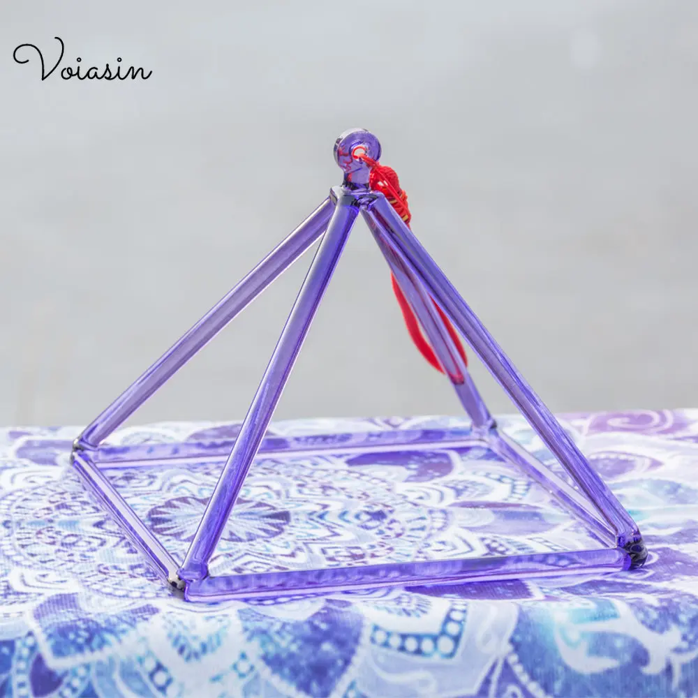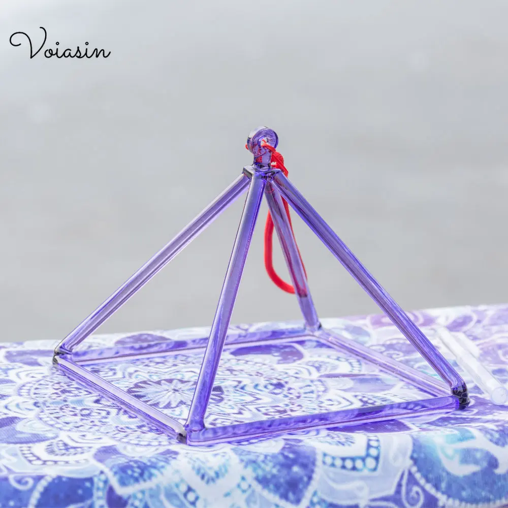 Pirámide de Canto de cristal de cuarzo púrpura para terapia de sonido, instrumento Musical de meditación triangular con regalo gratis, 5, 6, 7 y 8 pulgadas