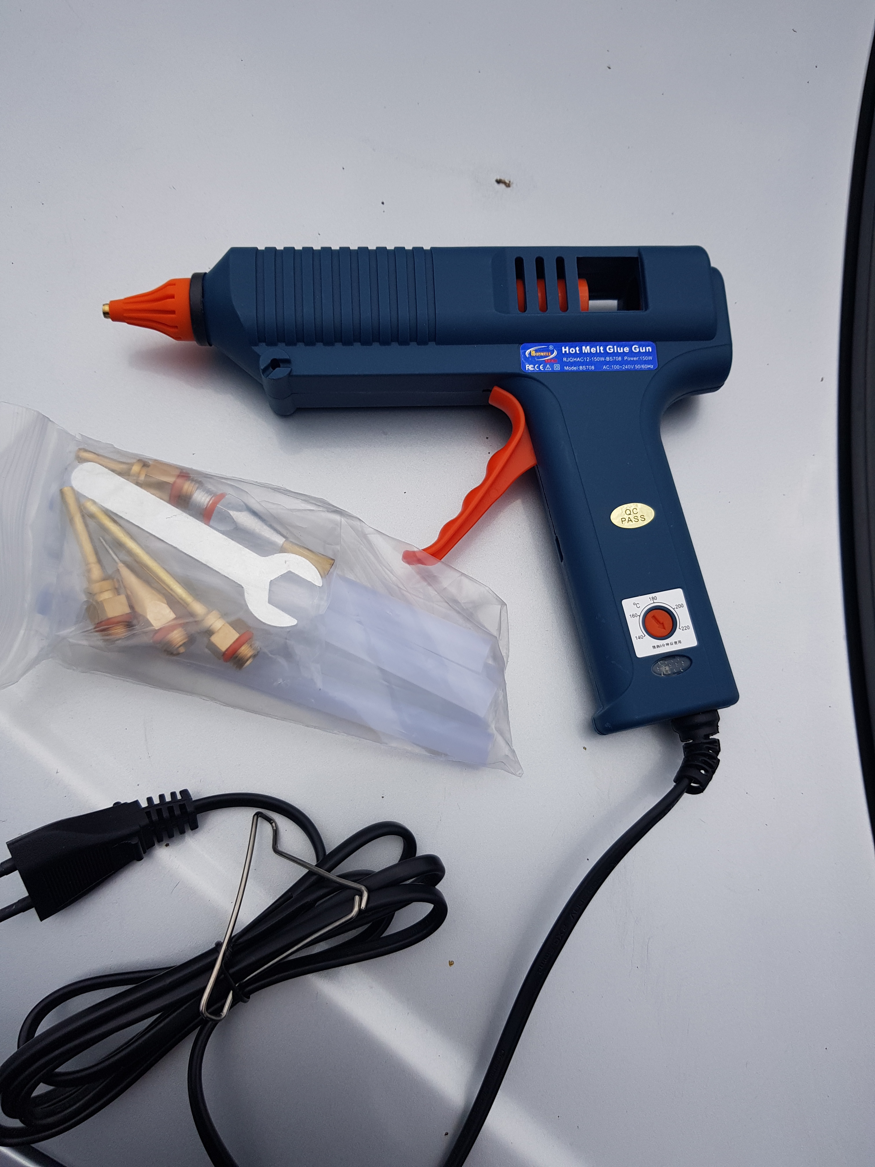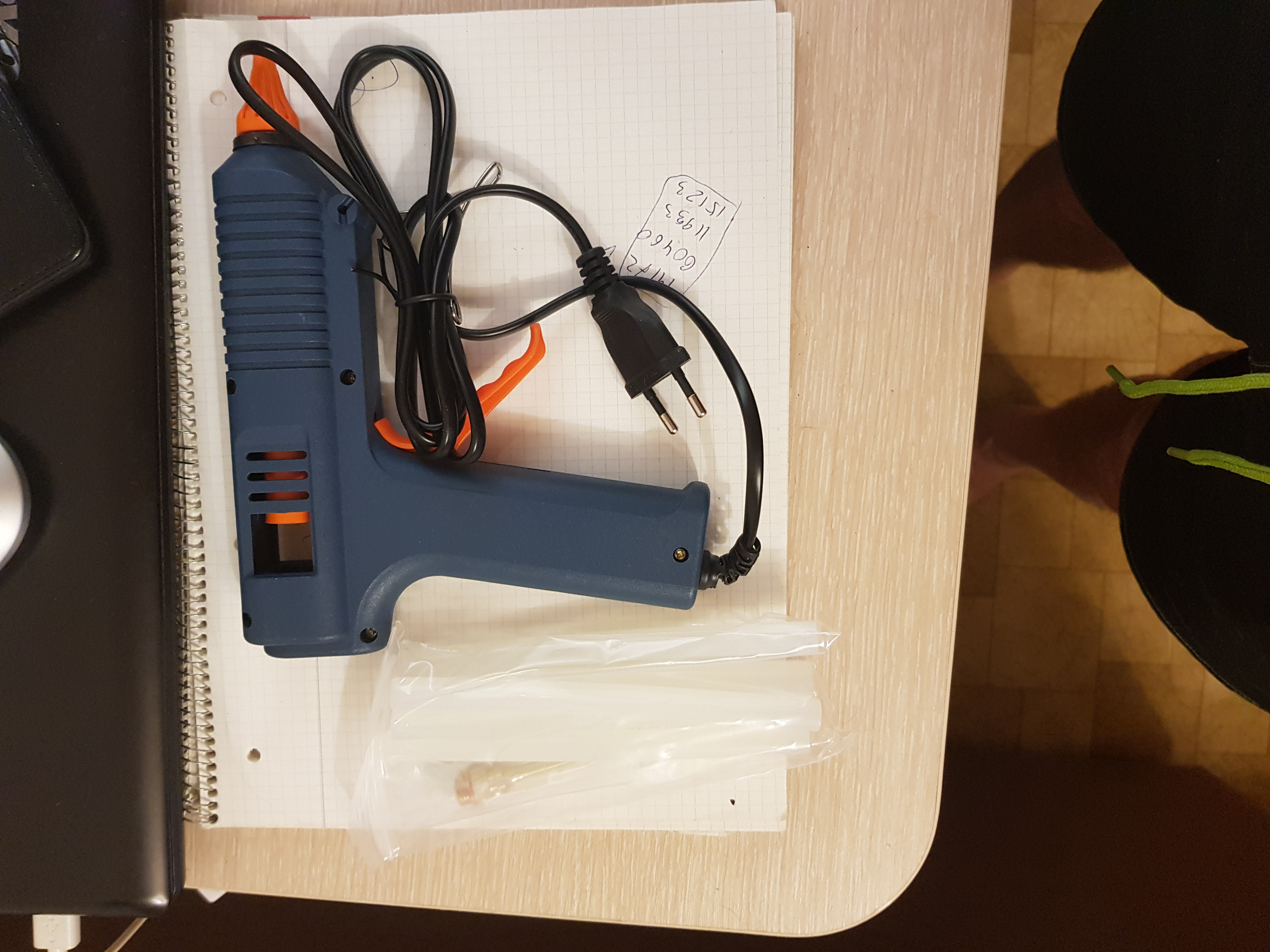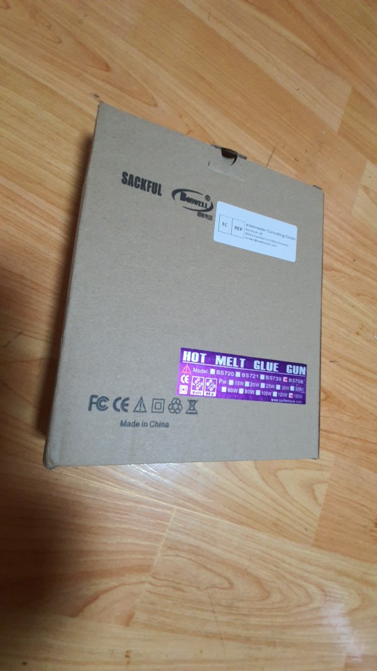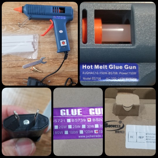 La pistola de pegamento recibida, por la apariencia de una especie de normas, probaremos en acción más tarde...