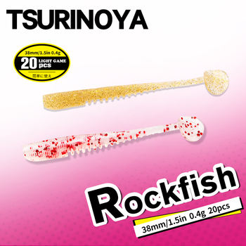 TSURINOYA-señuelo de pesca suave, 38mm, 0,4g, gusano de cola en T flexible para juego de luz Rockfish Ajing UV, cebo suave Swimbait de silicona luminoso