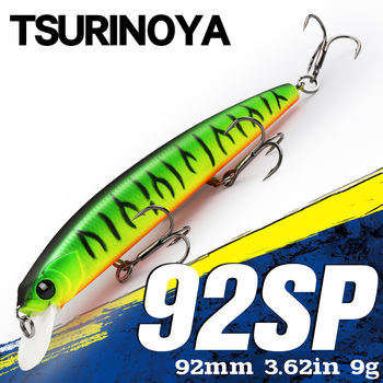 TSURINOYA-SEÑUELOS DE PESCA DE pececillos suspendidos 92SP DW78 92mm 9g 3 ganchos, cebo duro Artificial, señuelo de Lucio de fundición larga