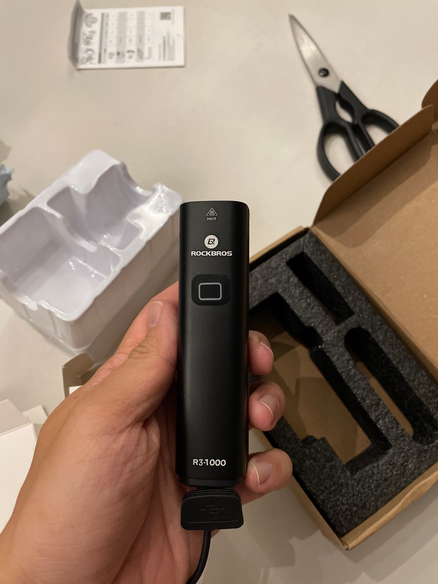 Compré la linterna R3-1000 con la luz trasera Q5. Calidad increíble! Llegó en 10 días y no fue gravado, muy rápido!