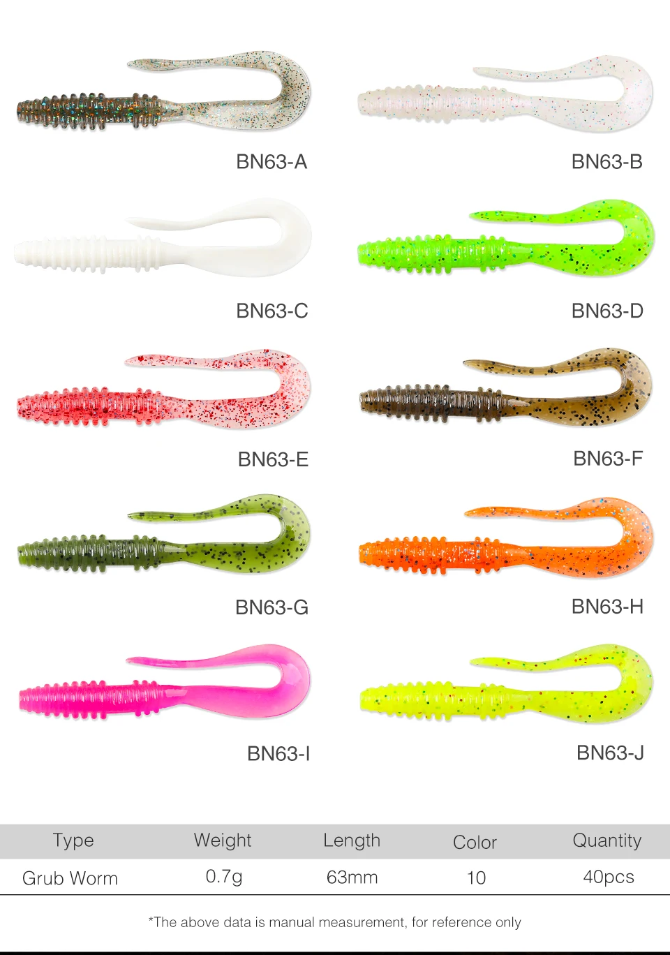 TSURINOYA-señuelo de pesca de gusano blando, cebo Artificial de silicona, 63mm, 0,7g, 40 piezas
