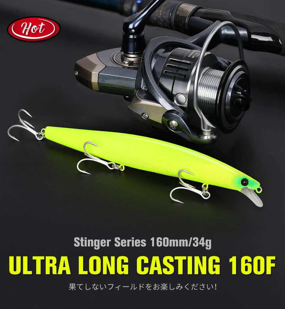 TSURINOYA-señuelo de pesca flotante 160F, cebo duro grande de 163mm y 31g, de fundición larga, lubina Artificial, para agua salada