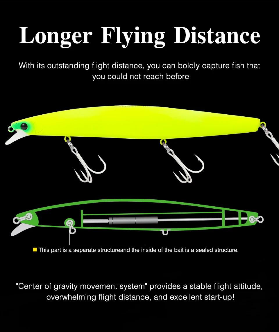 • Equipado con el sistema de movimiento del centro de gravedad de la serie STINGER. El centro de gravedad puede rebotar automáticamente para controlar con precisión el movimiento en el agua.
