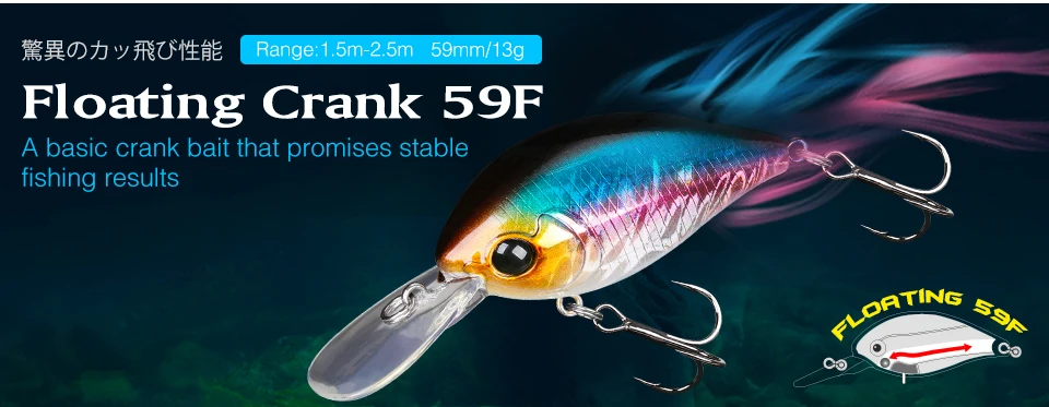 • Cuerpo pequeño para una menor resistencia aerodinámica para una fundición precisa. Se puede disfrutar de un emocionante juego de superficie con este crankfish.