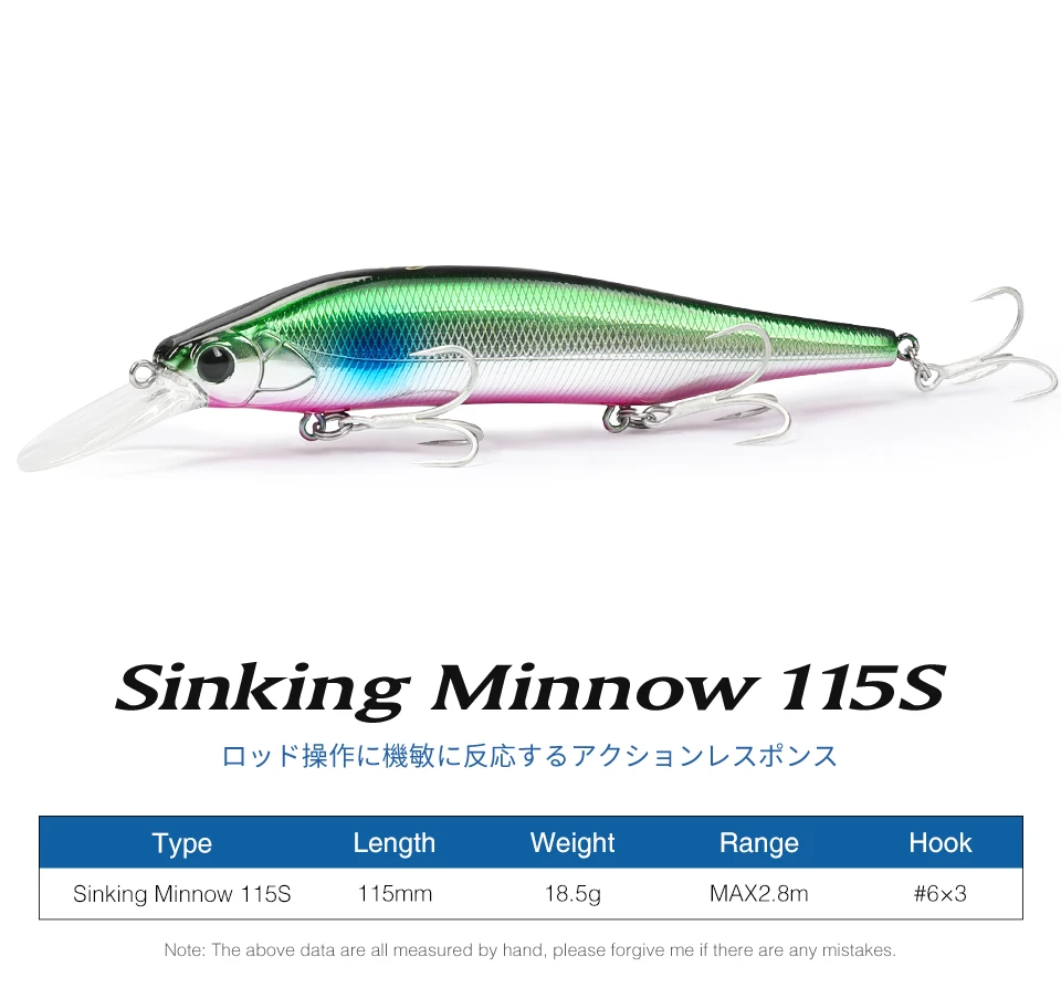 TSURINOYA 115S NYX SinKing Minnow Jerkbait 18,5G 115mm Sistema de peso de tungsteno de agua salada señuelo de pesca profesional Artificial