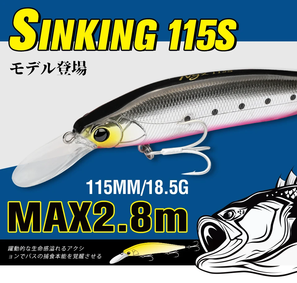 TSURINOYA-señuelo de pesca profesional Artificial, sistema de peso de tungsteno para agua salada, Minnow Jerkbait, 115g, 18,5mm, NYX, 115S