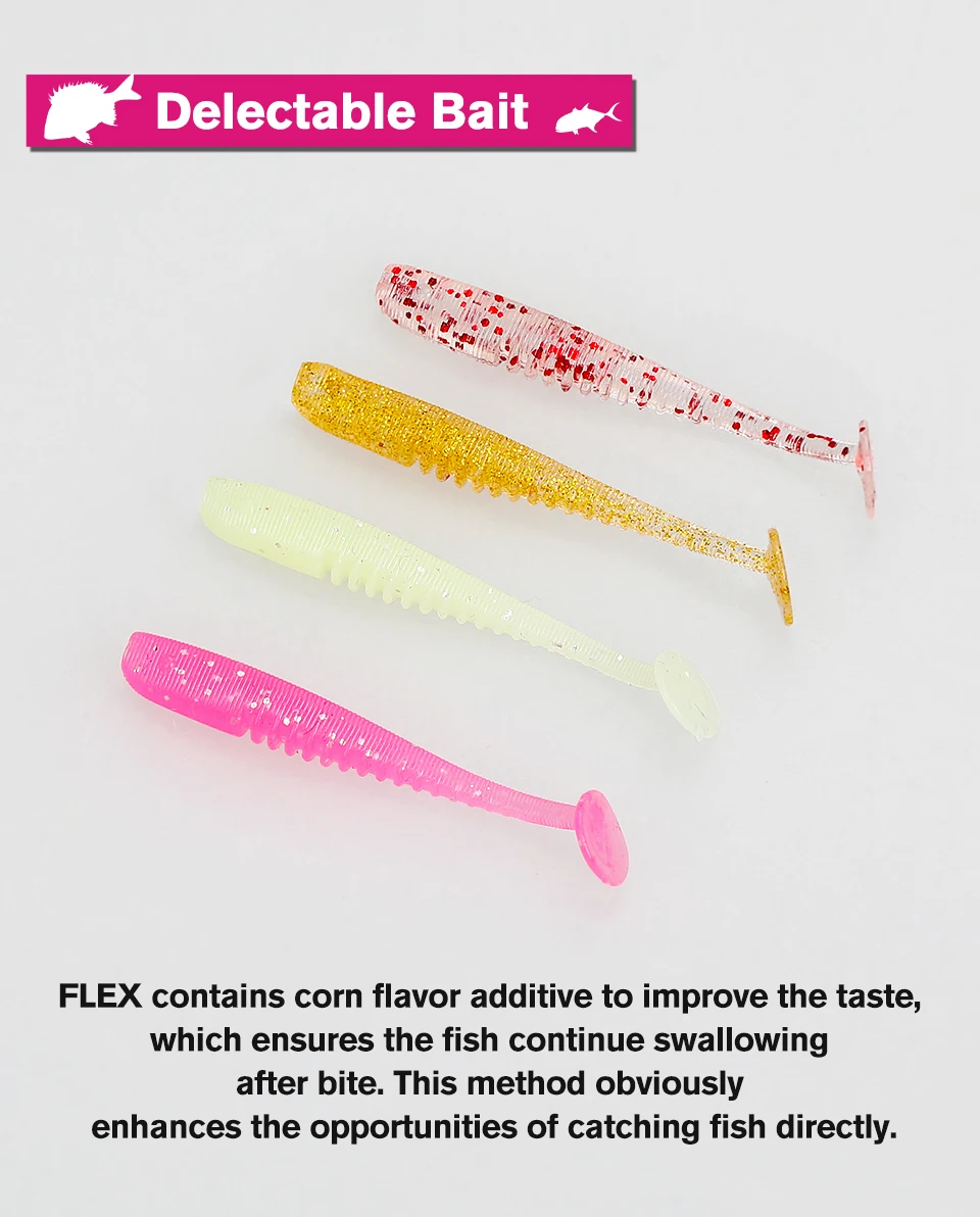 FLEX contiene aditivos con sabor a maíz para mejorar el sabor y aumentar las posibilidades de pesca directa.