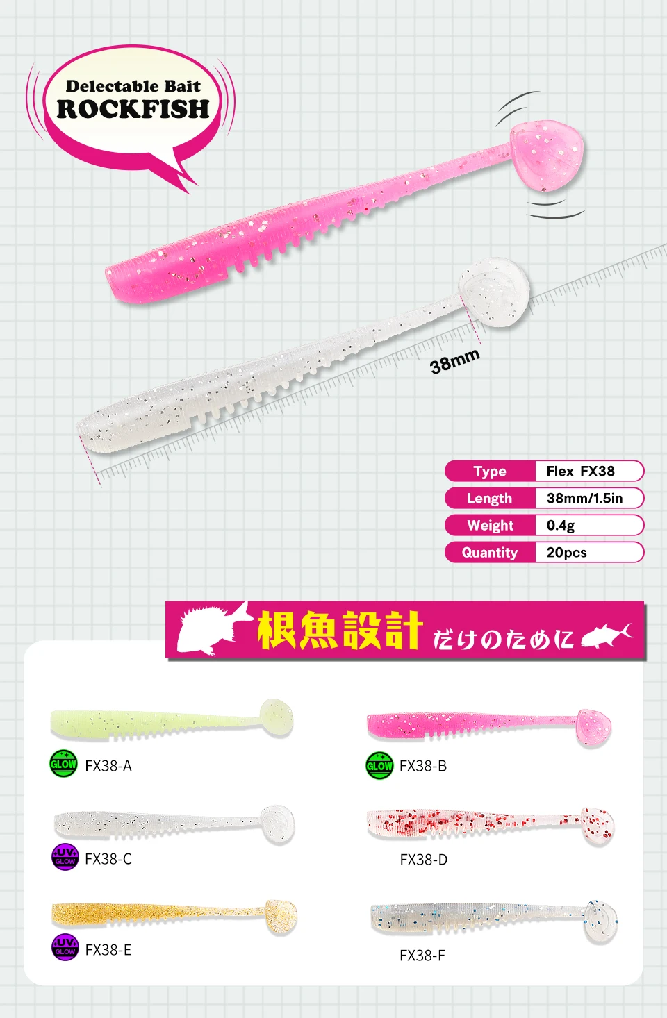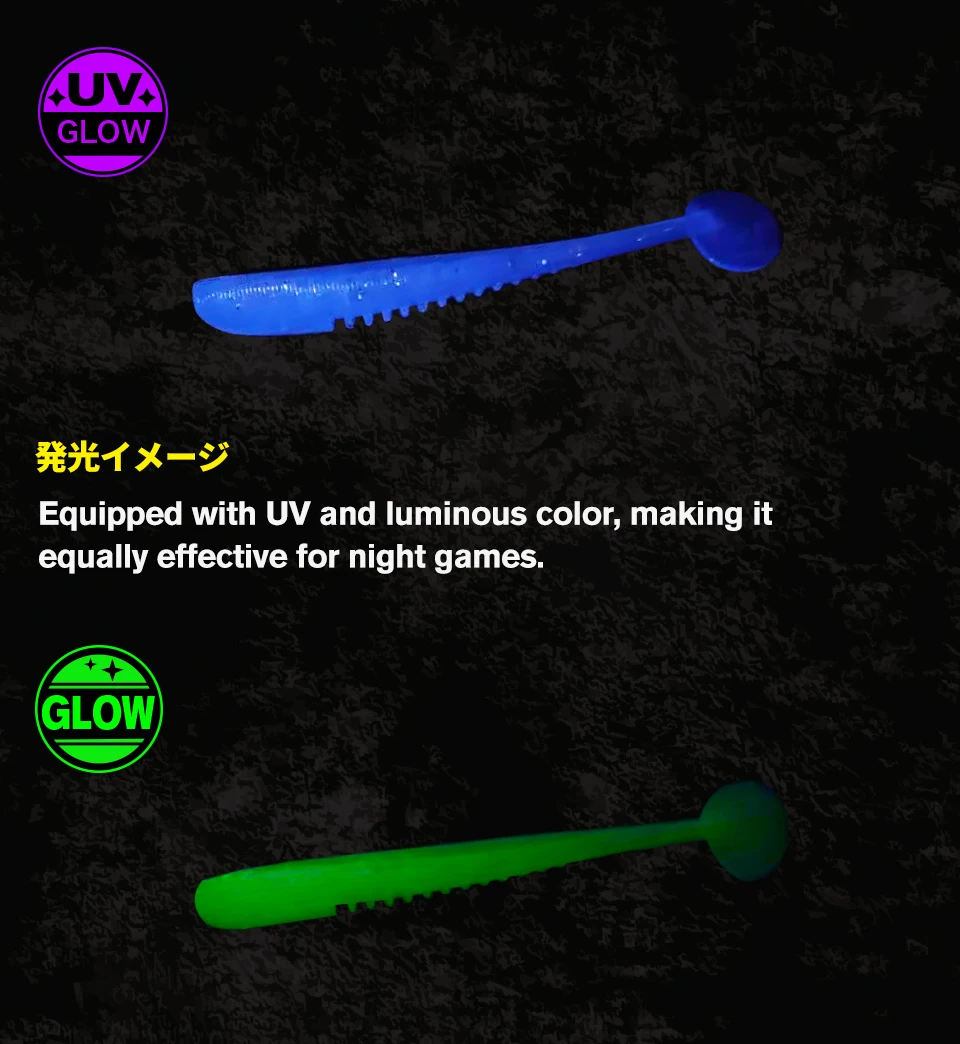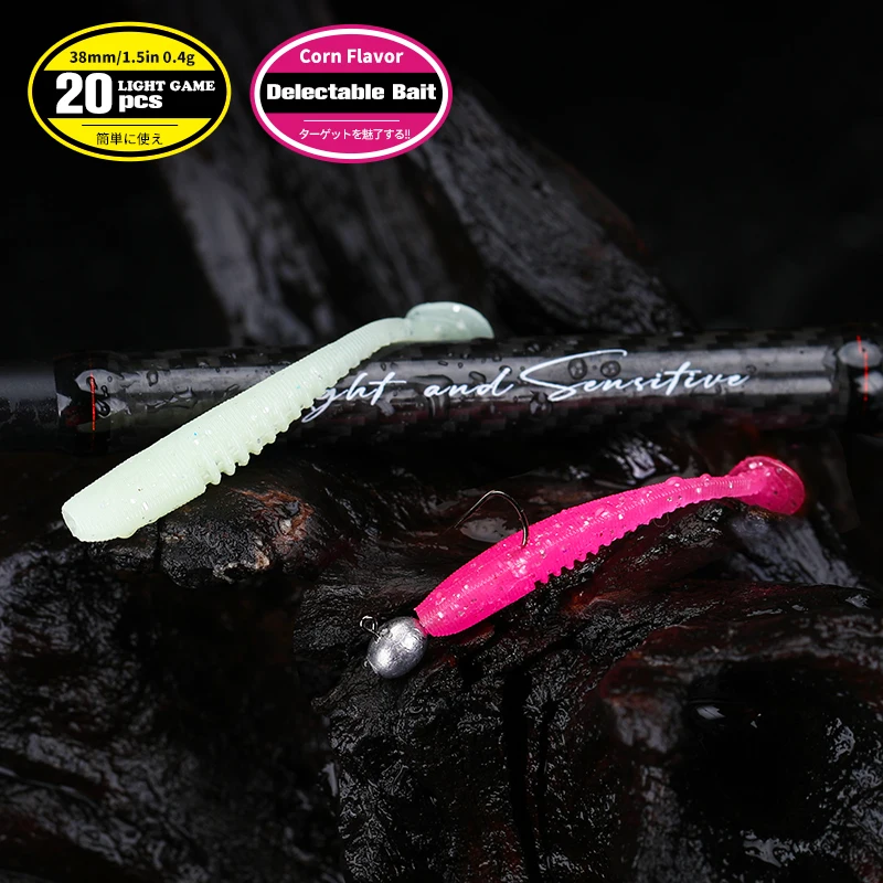 TSURINOYA-señuelo de pesca suave, 38mm, 0,4g, gusano de cola en T flexible para juego de luz Rockfish Ajing UV, cebo suave Swimbait de silicona luminoso
