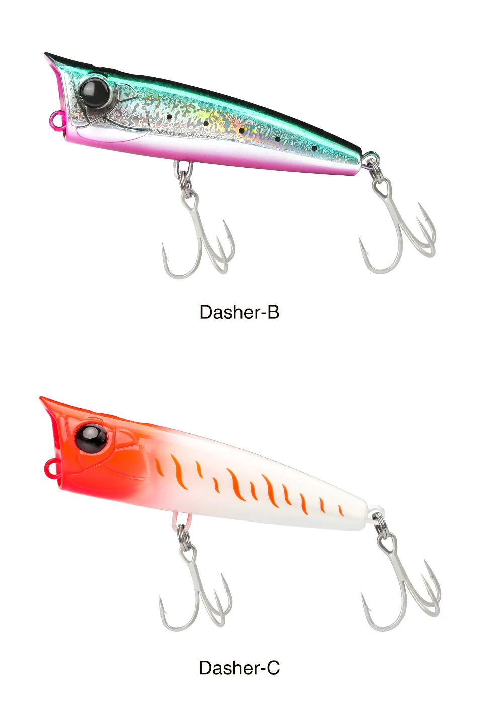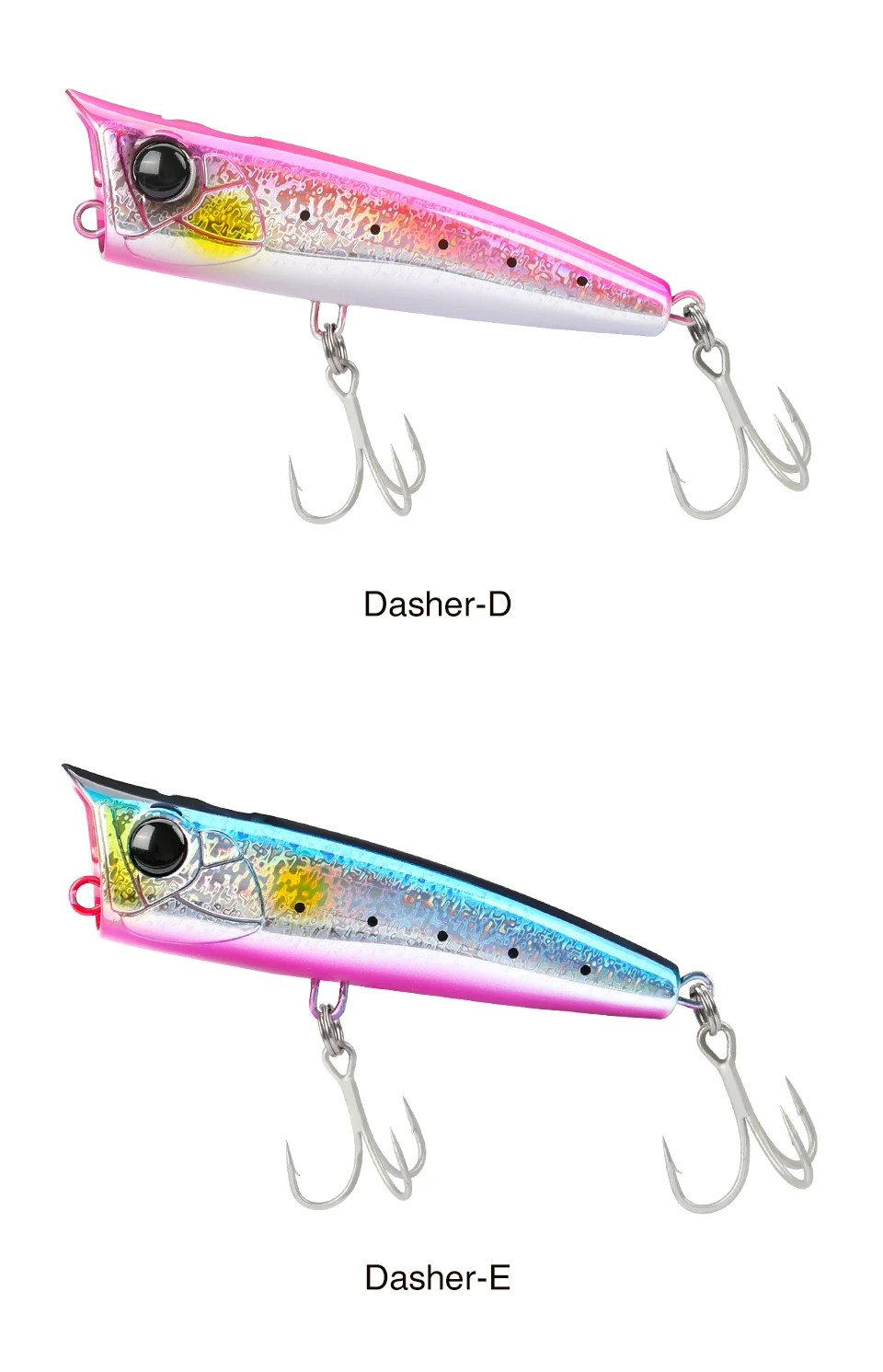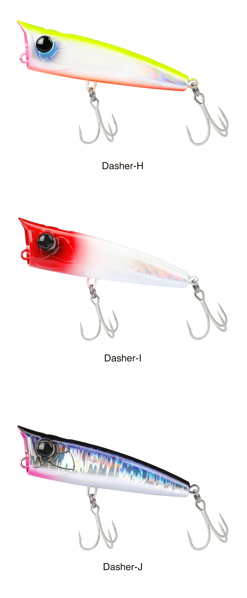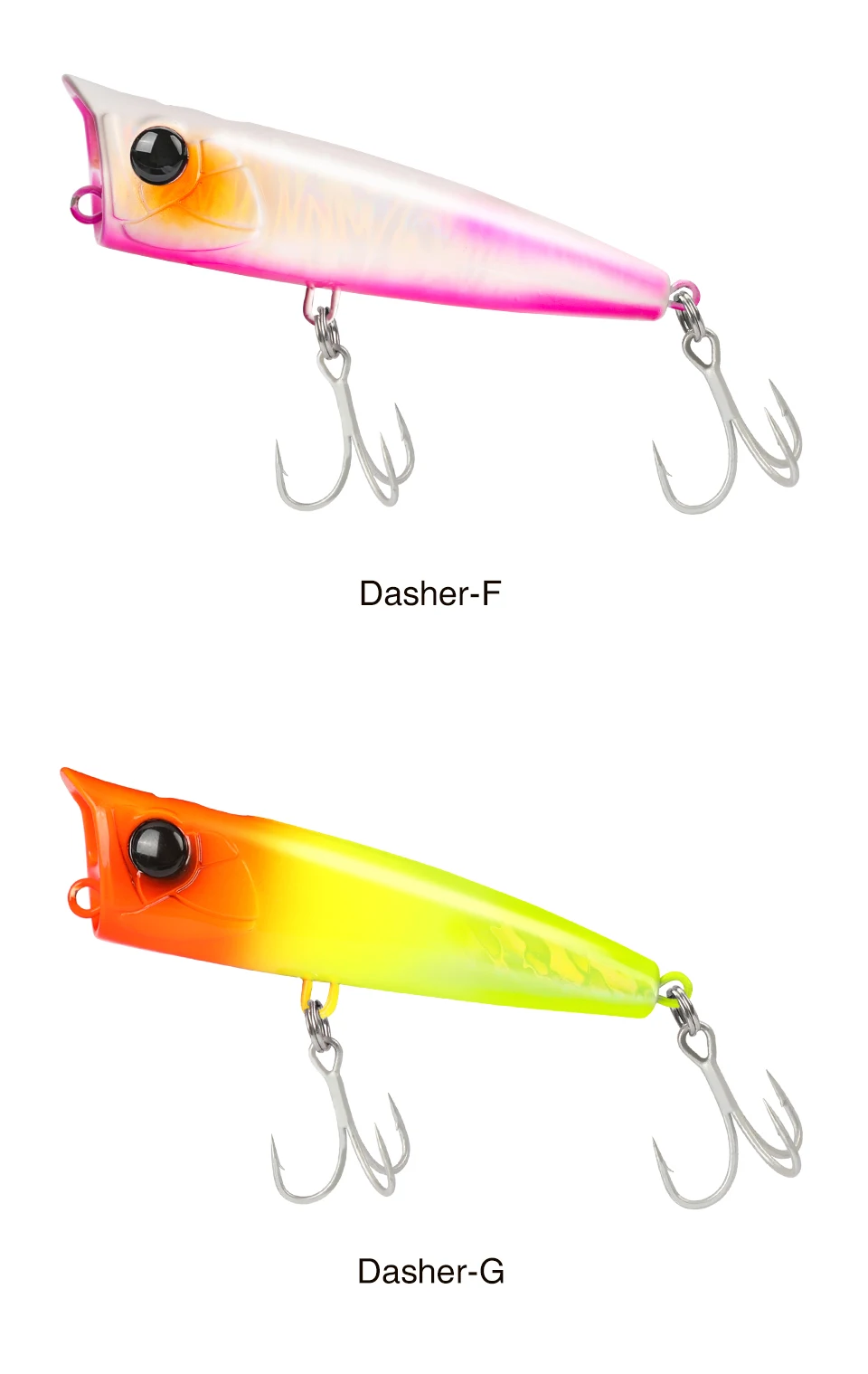 90F, un popper versátil que puede lograr fácilmente una distancia de vuelo excepcional y también es posible hacer un fuerte atractivo mientras crea rayas de espuma blanca en el agua. ¡despierta el instinto de los depredadores!