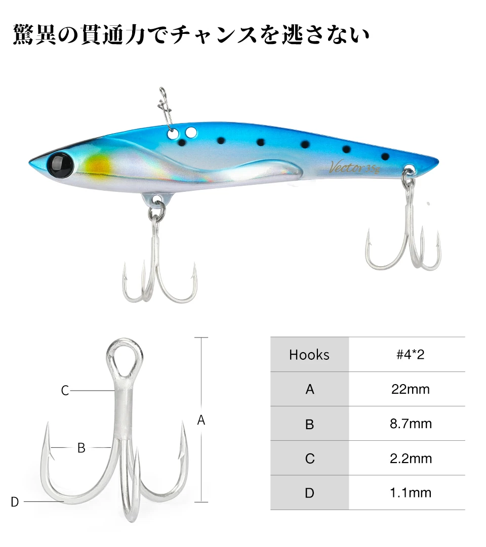 Excelente distancia de lanzamiento gracias a una postura de vuelo estable y un centro de gravedad bajo de 35g. Simplemente arrójalo tan fuerte como puedas y enrollarlo para encender la presa del pez.