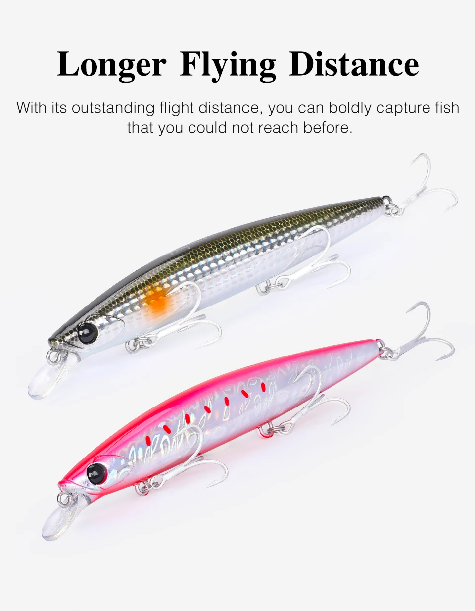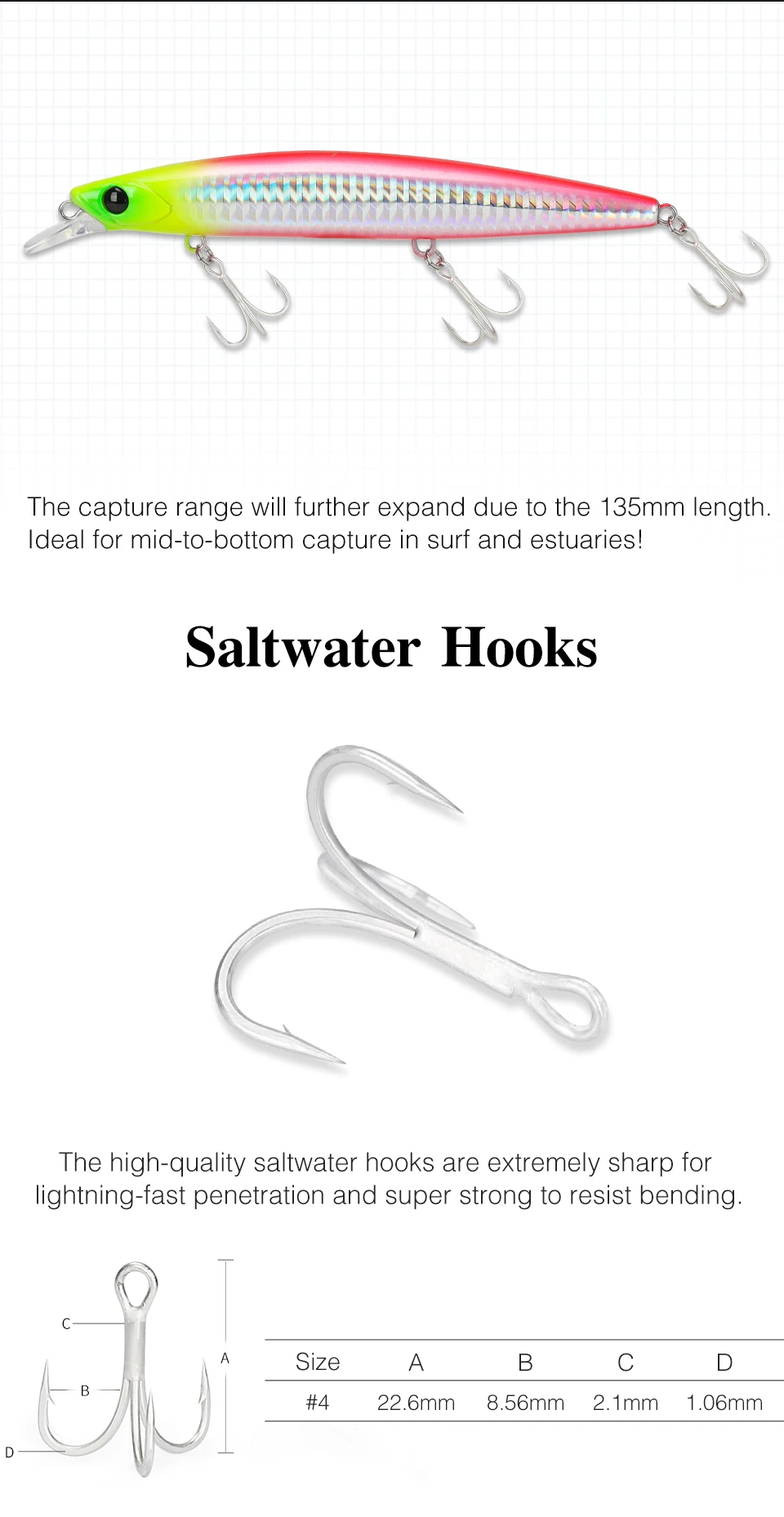 • El rango de captura se ampliará aún más debido a la longitud de 135mm. ¡Ideal para la captura de fondo medio en surf y estuarios!