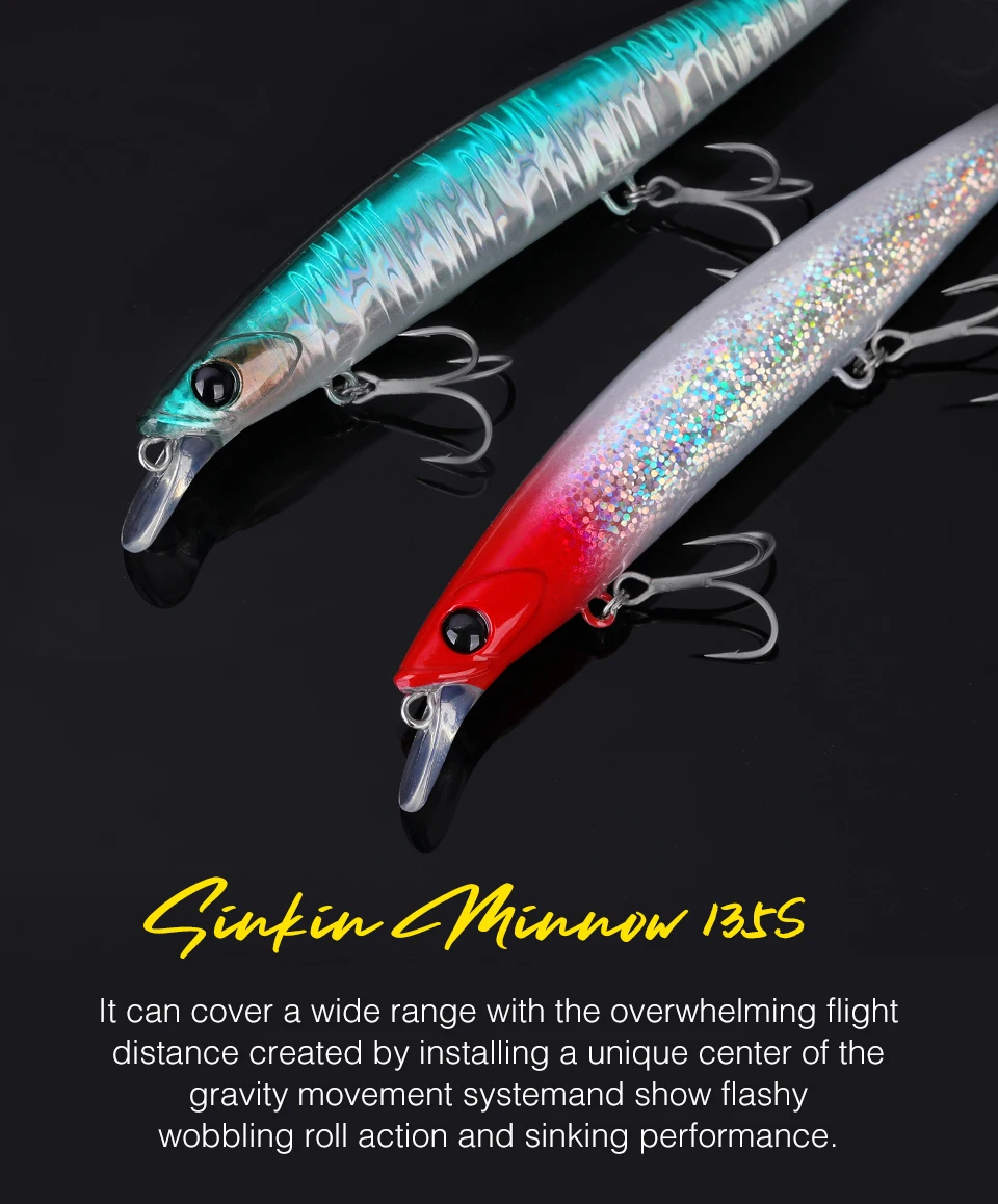 TSURINOYA-Señuelos de Pesca de agua salada, cebo duro con movimiento de tungsteno, 135S, 135mm, 26,4g